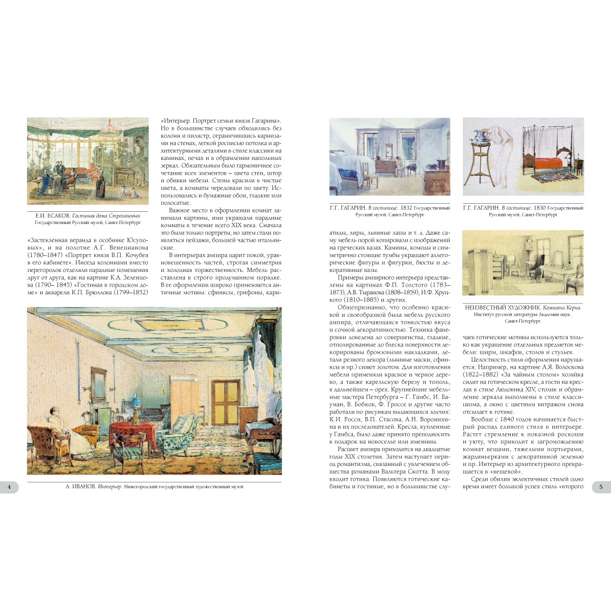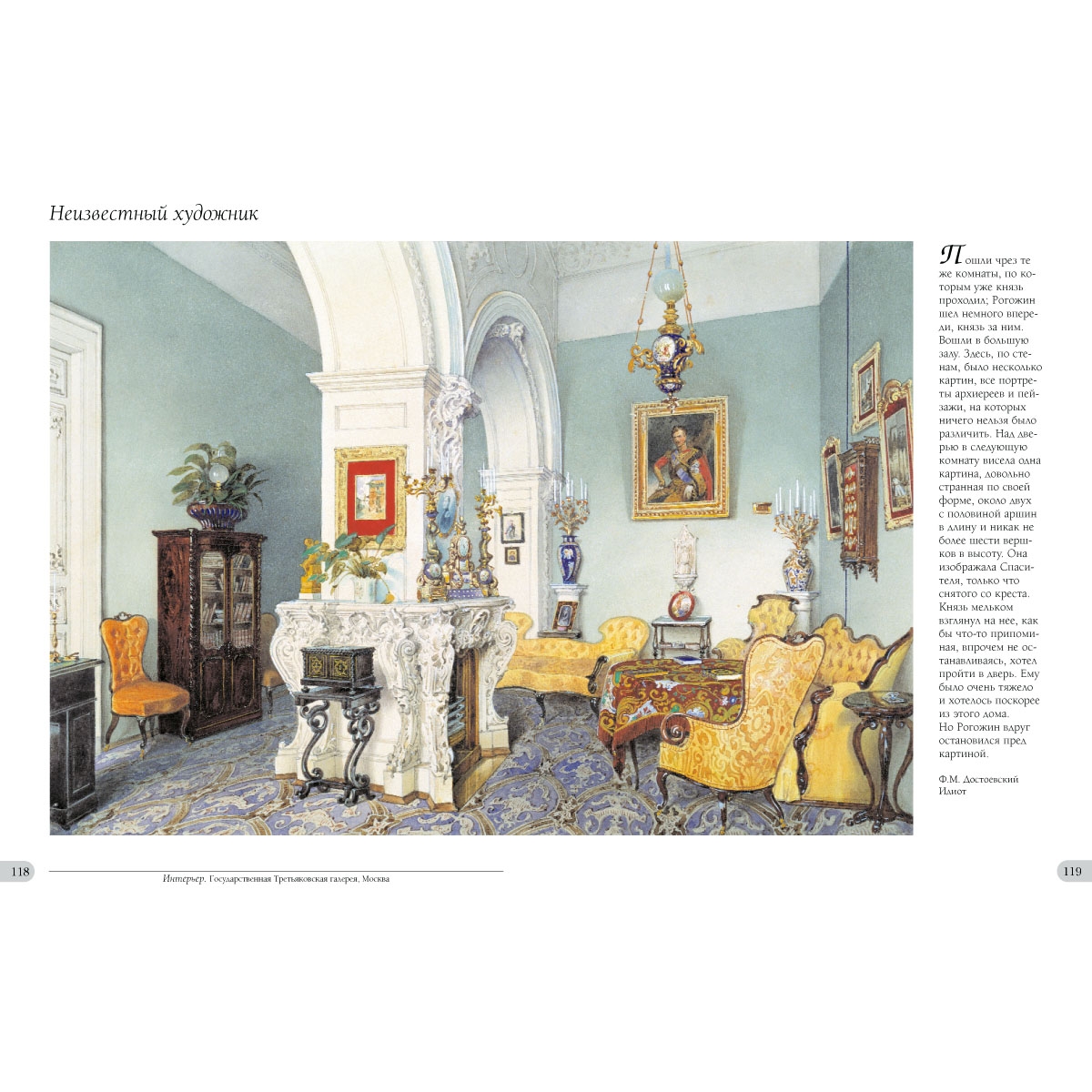 Альбом посвящен интерьеру в русской живописи. В него вошли и работы основоположников направления Г. Сороки, А. Венецианова, и работы малоизвестных авторов, например М. Илинской, которые нам кажутся наивными, и работы таких мастеров интерьерной живописи, как С. Жуковский, Л. Премацци, С. Виноградов. Благодаря этому альбому вы узнаете, как выглядели гостиные и спальни, диванные и залы, детские и кабинеты в домах XIX – начала XX века, а также какими предметами украшали свой интерьер жители предыдущих столетий. В нем многогранно представлен «портрет помещений», дополненный цитатами из русской классики. Этот альбом будет интересен всем, кто интересуется живописью русских художников, а также бытом русского дворянства начала XIX – первой половины XX века.