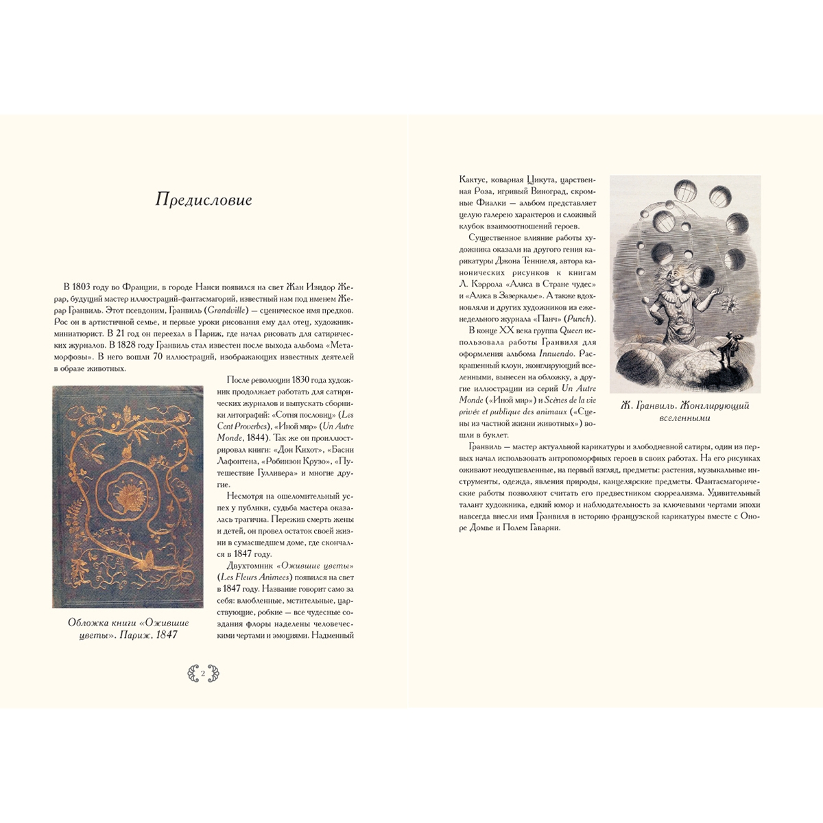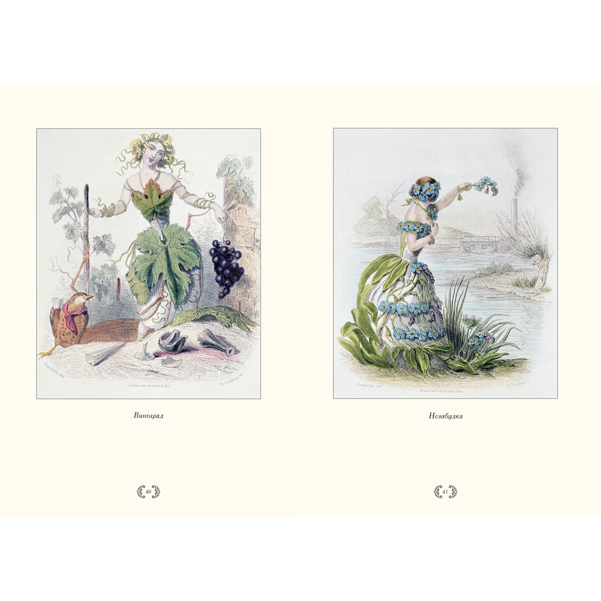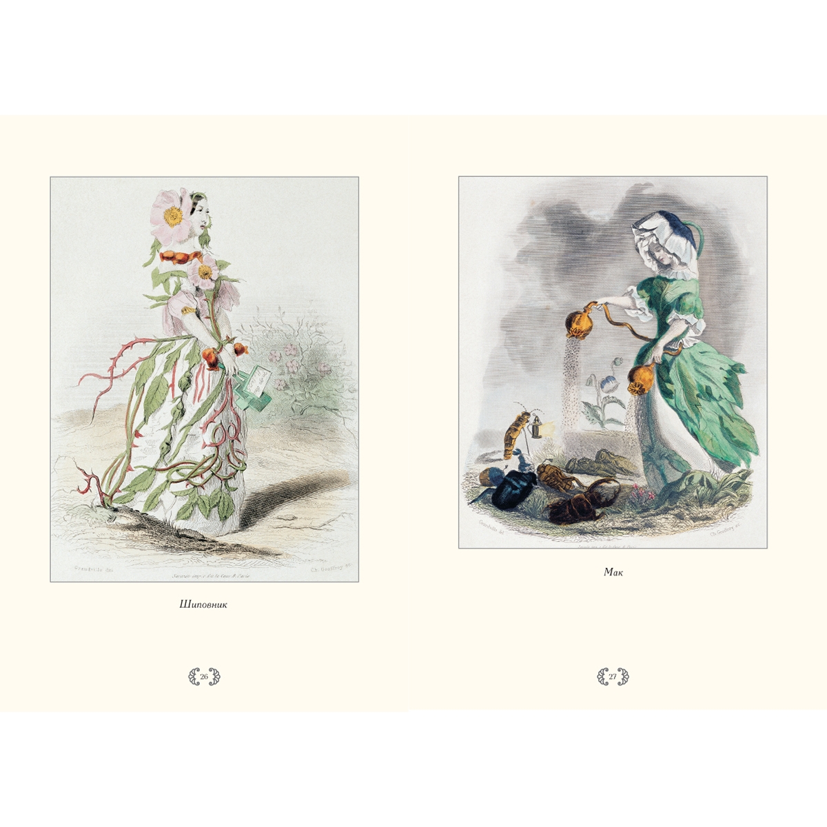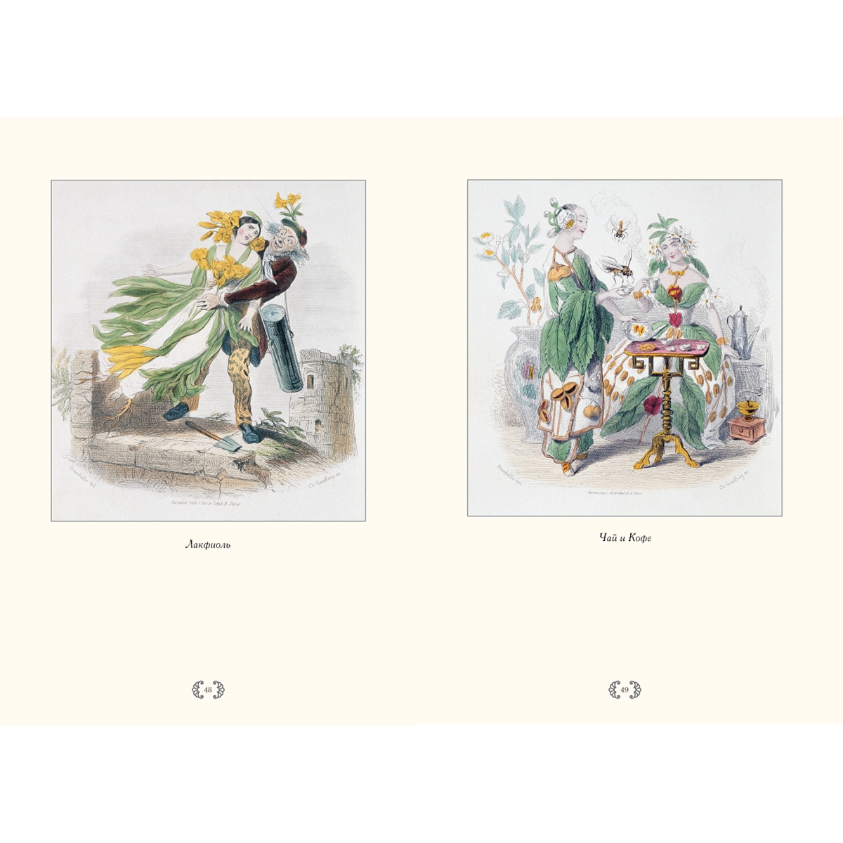В этом уникальном альбоме представлены иллюстрации из книги «Ожившие цветы» (1847), выполненные художником Ж. Гранвилем. Удивительный талант, юмор и наблюдательность за ключевыми чертами эпохи внесли имя Гранвиля в историю французской карикатуры.