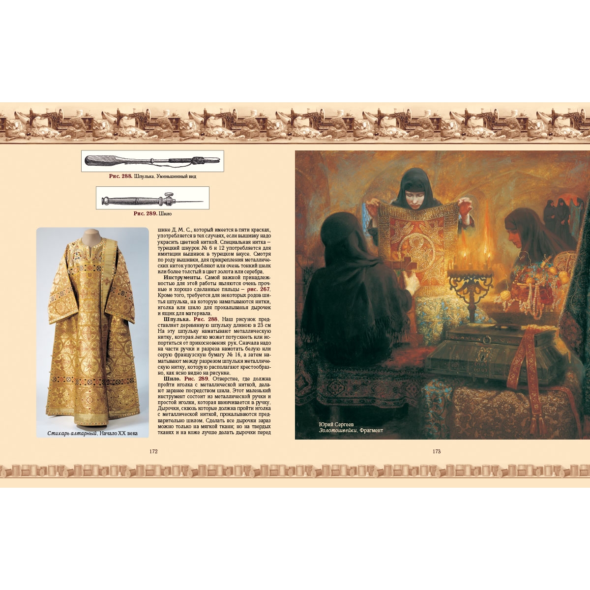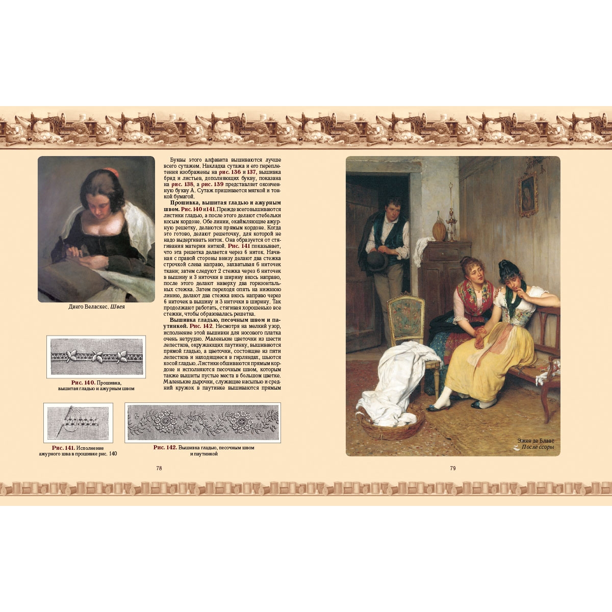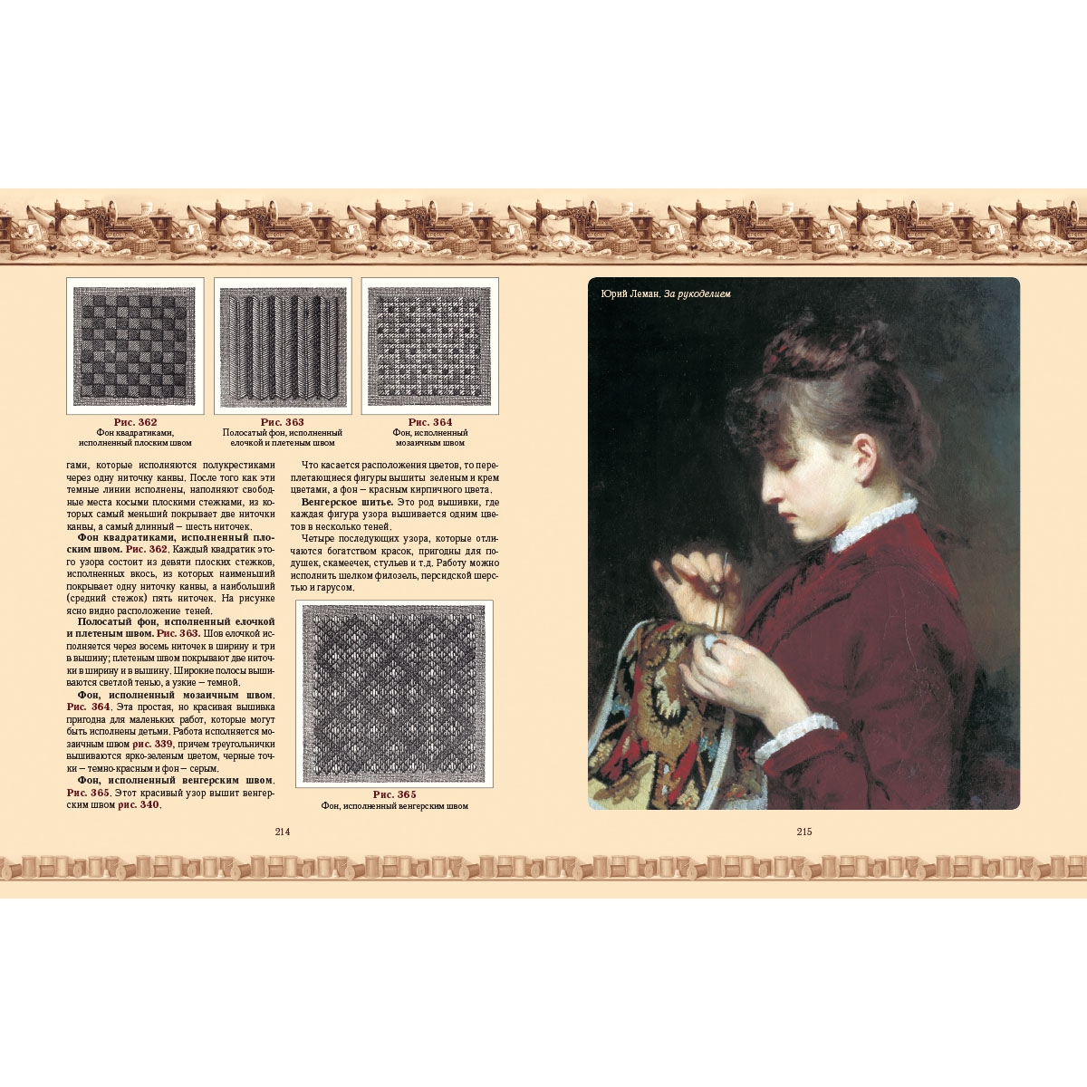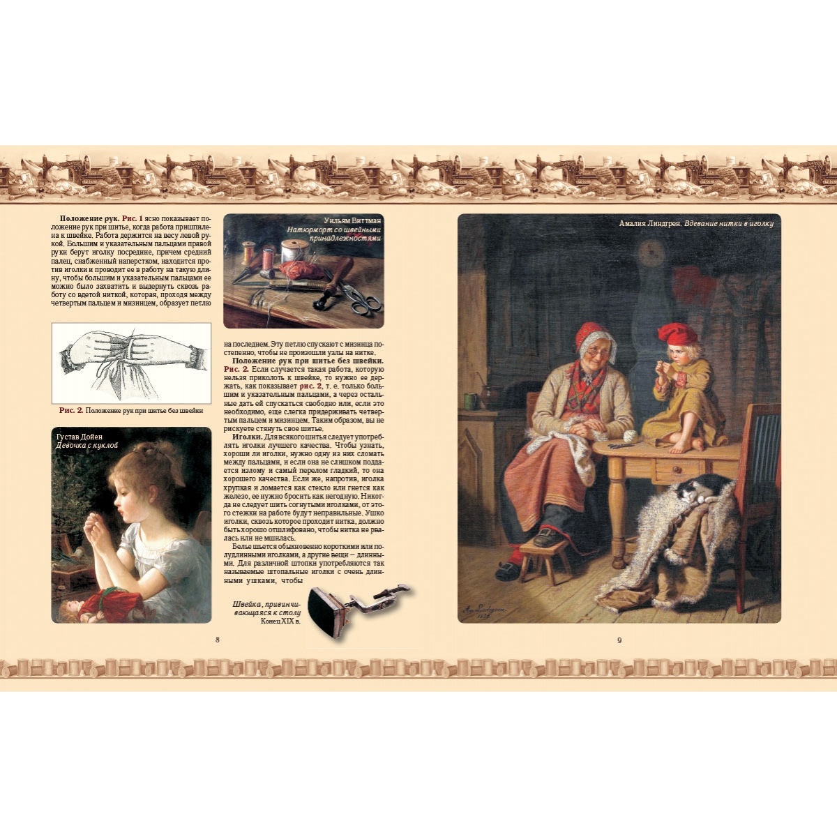 Чтобы экскурс в историю женских рукоделий был ярким и наглядным, мы дополнили оригинальные авторские рисунки уникальной тематической коллекцией мировой живописи, а также подборкой фотографий старинных и современных образцов рукоделия.