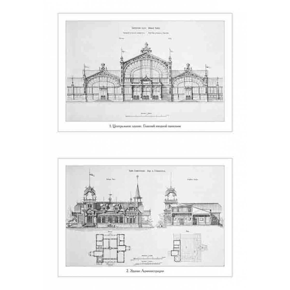 В данном альбоме представлено собрание литографий чертежей павильонов Всероссийской промышленно-художественной выставки, проходившей в Нижнем Новгороде в 1896 г.