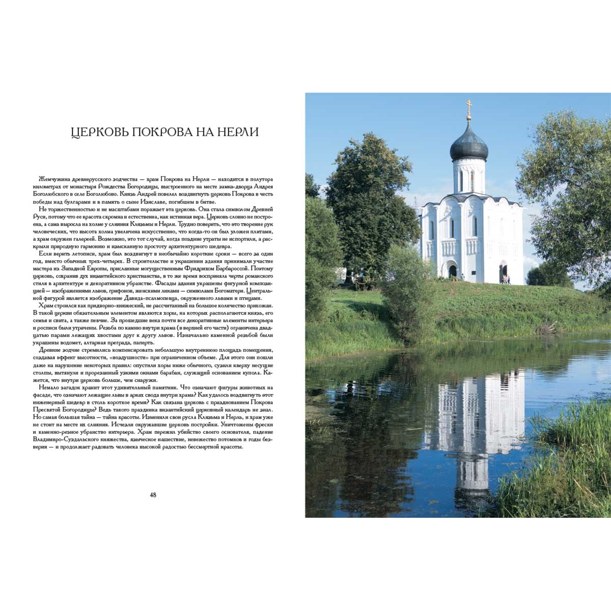 Издательство «Белый город» представляет вниманию читателя неповторимый альбом из серии «Храмы России». Альбом представляет фотографии церкви Покрова на Нерли и монастыря Рождества Богородицы: храм Успения Пресвятой Богородицы, широко известные палаты Андрея Боголюбского, а также иконы и внутреннее убранство храма. Альбом будет интересен широкому кругу читателей: от путешественников и любителей русской культуры до профессионалов в области искусства.
