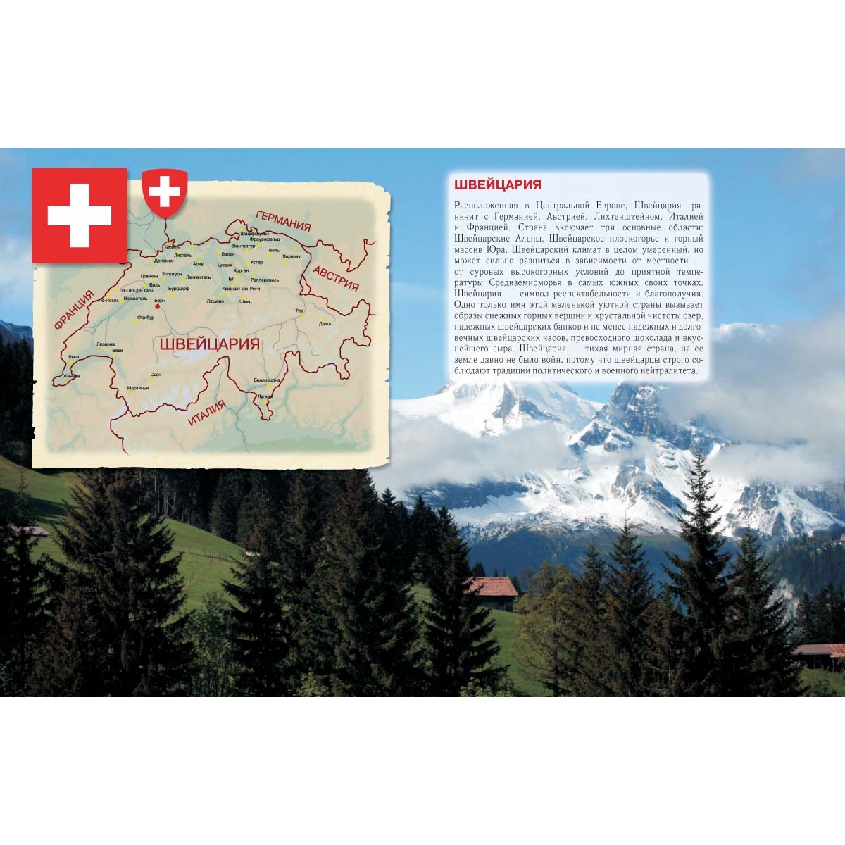 Путеводитель серии «Мировое путешествие» приглашает насладиться альпийским раем благополучной, респектабельной Швейцарии – страны-сказки с шоколадными реками и сырными берегами, увидеть карликовое государство Лихтенштейн – княжество на «юном Рейне».