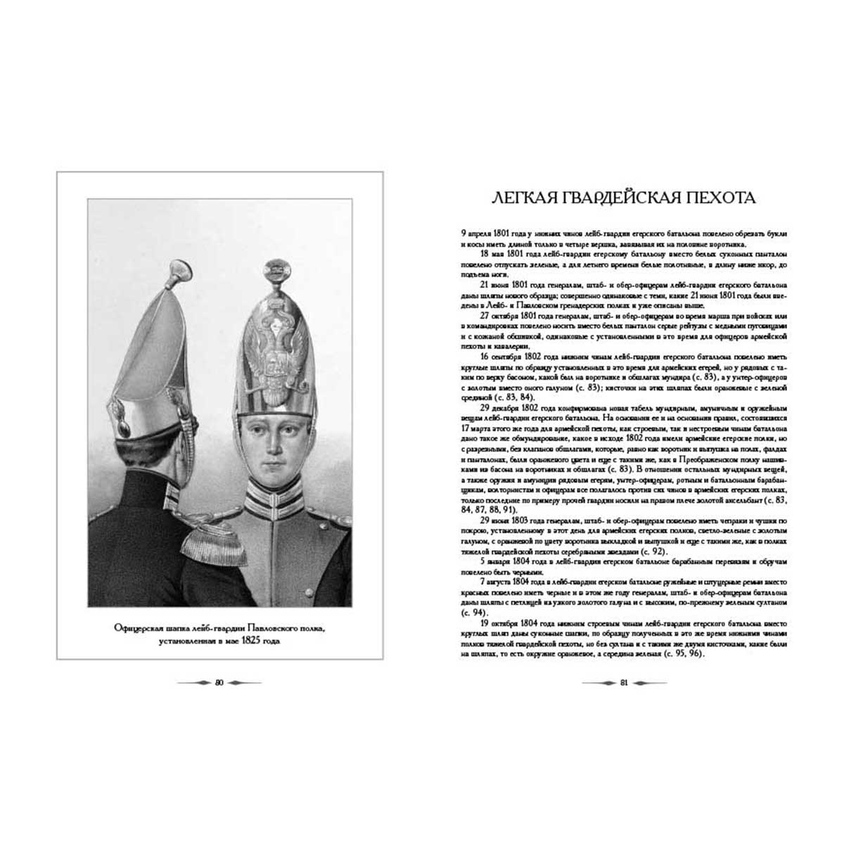 Книга содержит сведения об изменениях в обмундировании тяжелой и легкой гвардейской пехоты на всем протяжении царствования Александра I.