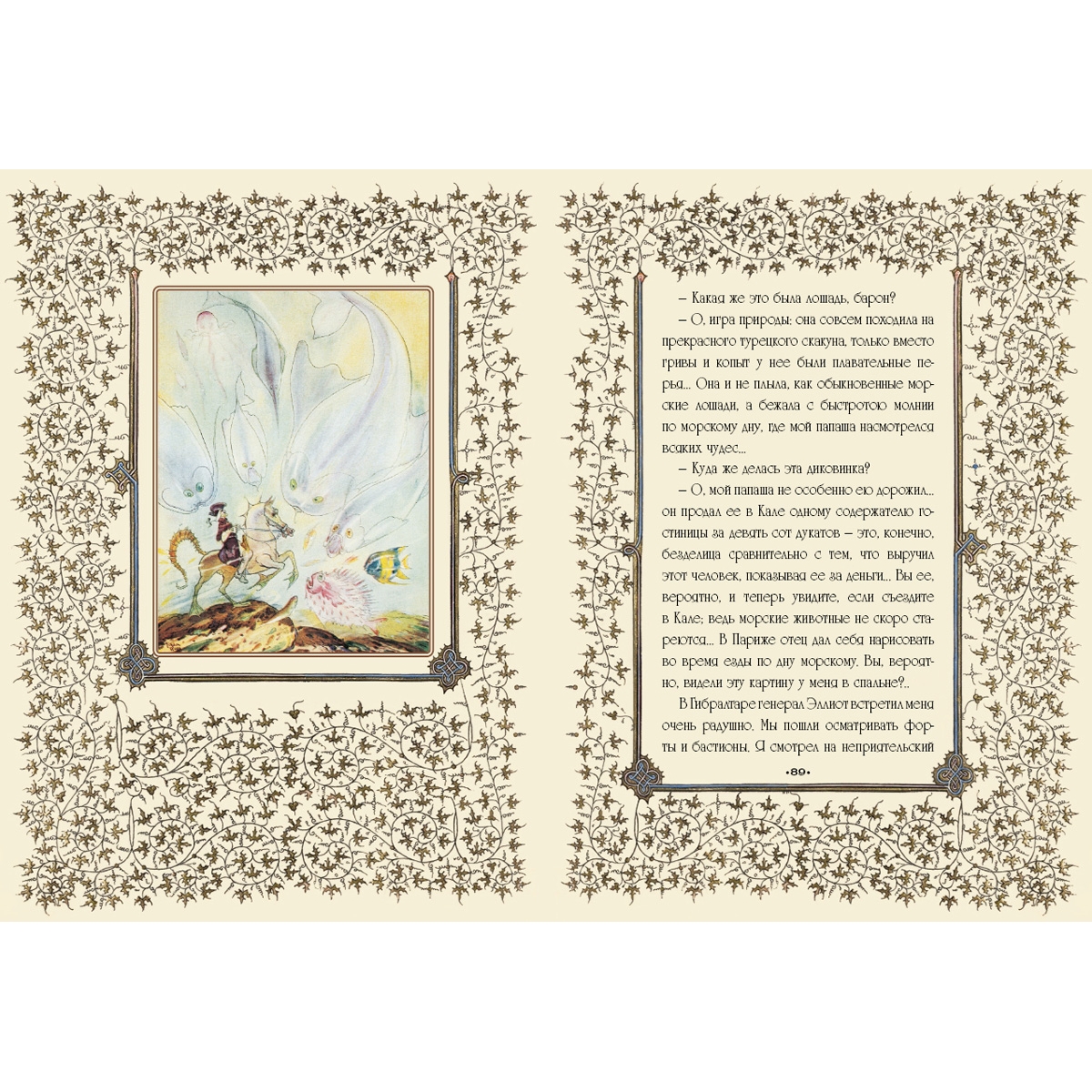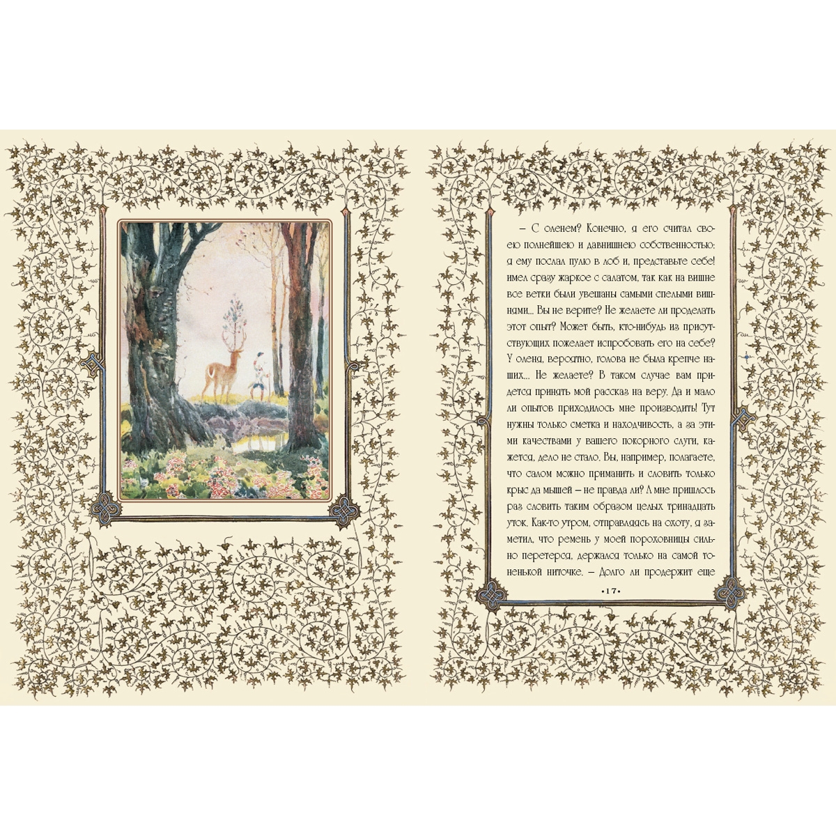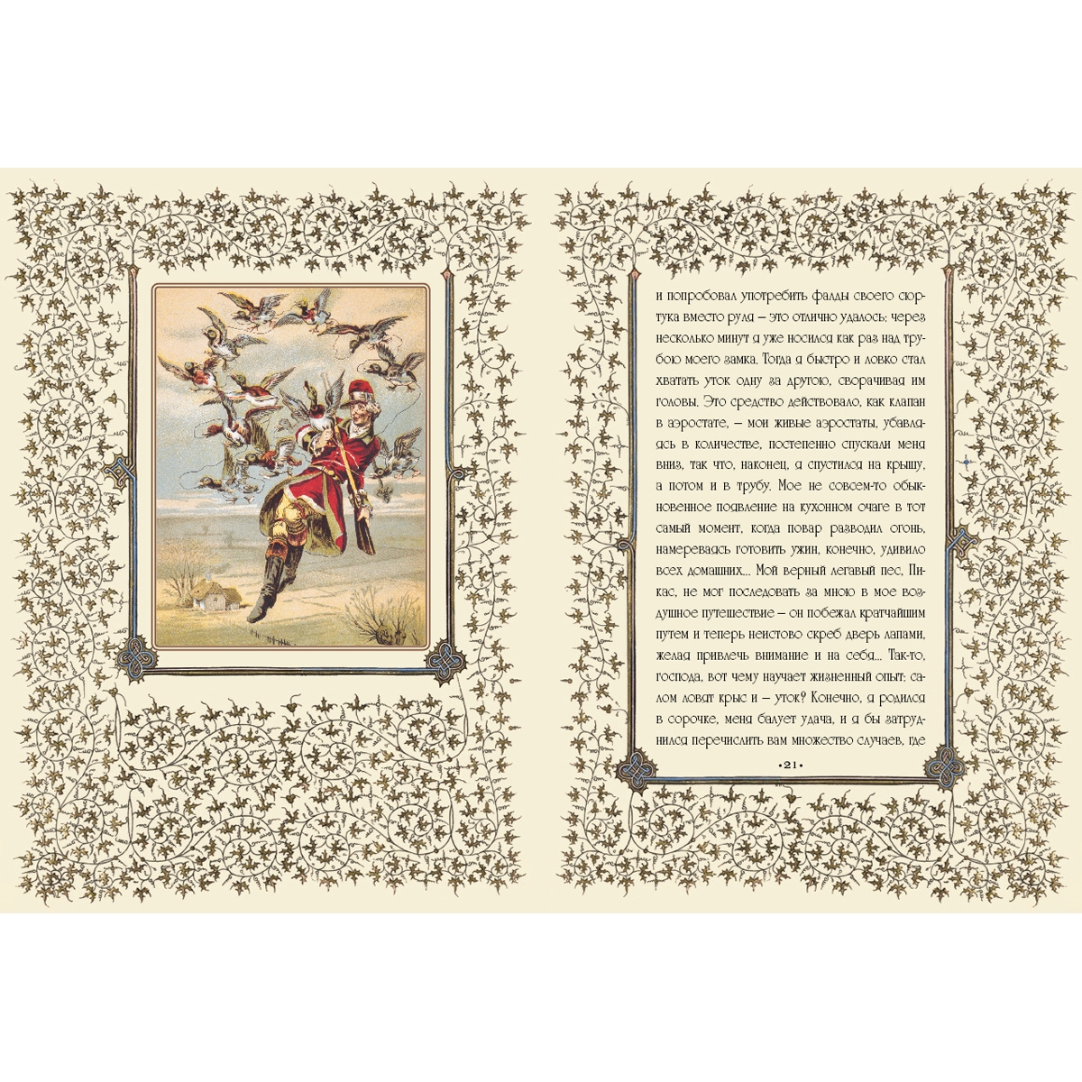 Эта книга замечательна не только великолепными литературными достоинствами, но еще и тем, что ее герой был реальным человеком. Мюнхгаузен служил в России и даже продвинулся по службе, став командиром элитной роты. Он «рассказывал поразительные истории о своих охотничьих похождениях и приключениях в России», чем вдохновил автора, и тот превратил его в литературного героя. Мюнхгаузен, теперь уже герой бессмертной книги, летал на пушечном ядре, взбирался на Луну по бобовому стеблю, побывал в брюхе рыбы, сам себя за волосы вытащил из болота. Множество других приключений было на счету невероятного героя, а автор и иллюстраторы превратили его рассказы в нетленный памятник литературы. Феномен героя – не в том, что он… враль, а в том, что из всех своих приключений он выходил победителем. А значит, веселому оптимисту ничего не страшно. Может, поэтому книга и нравится – и детям, и взрослым, обучая сохранять выдержку, терпение и никогда не сдаваться, какой бы трудной ни оказалась ситуация.
