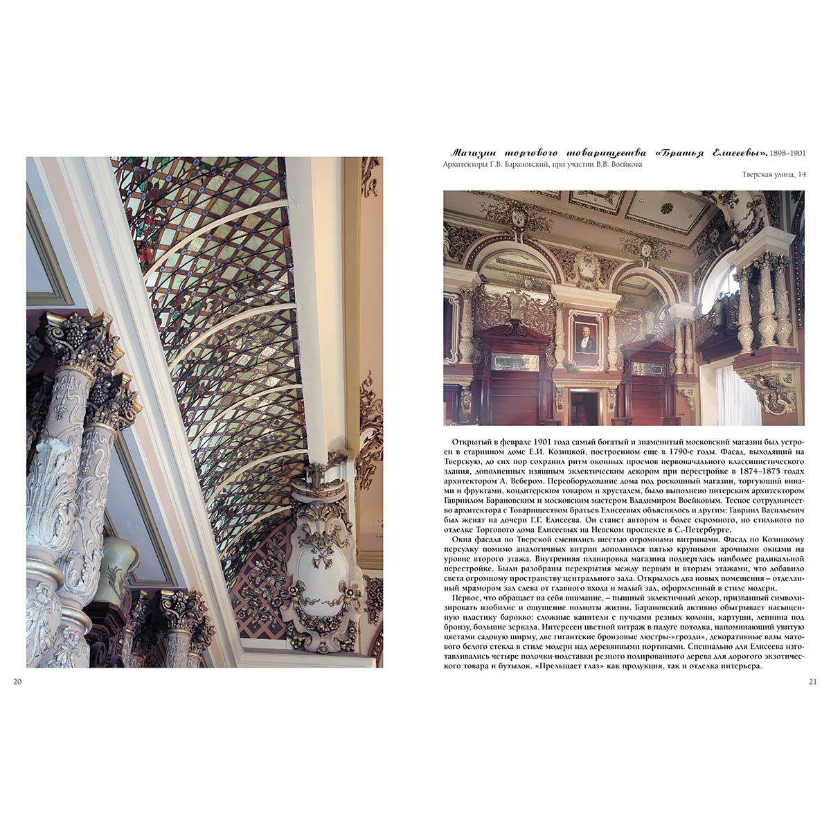 Альбом посвящен художественному направлению конца 19 ‒ начала 20 столетий, которое в европейской практике имело ряд версий ‒ «Ар Нуво», «Югендстиль», «Сецессион» или «Либерти». Как и во многих странах, русский вариант стиля модерн, подготовленный национально-романтическими исканиями художников, прочно занял пространство во всех сферах художественной деятельности. Московская архитектура, ее образная городская индивидуальность, стала яркой, специфичной вариацией стиля рубежа веков. Несмотря на краткость существования, модерн успел привлечь внимание зодчих и художников самого разнообразного творческого диапазона.
