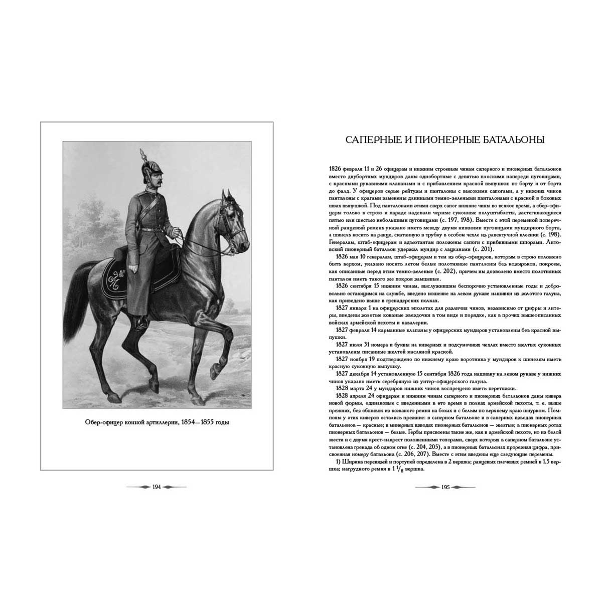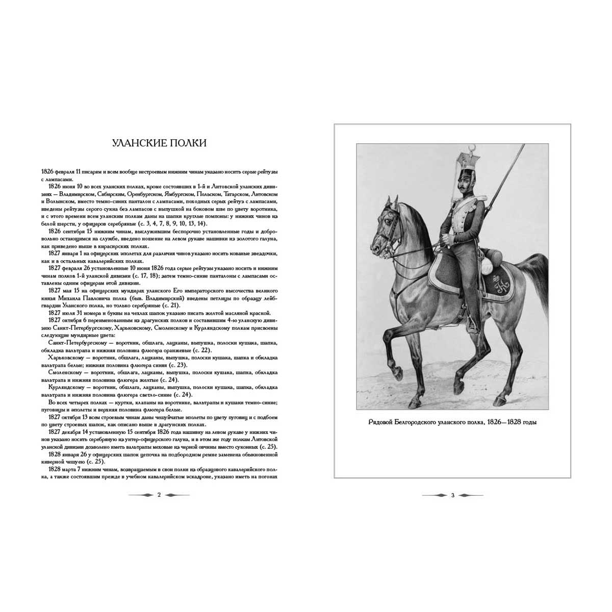 Книга содержит военные приказы по переобмундированию и перевооружению уланских, гусарских полков, корпуса жандармов, армейского фурштата, пешей и конной артиллерии, саперных и пионерных батальонов и конных пионеров на протяжении царствования Николая I.