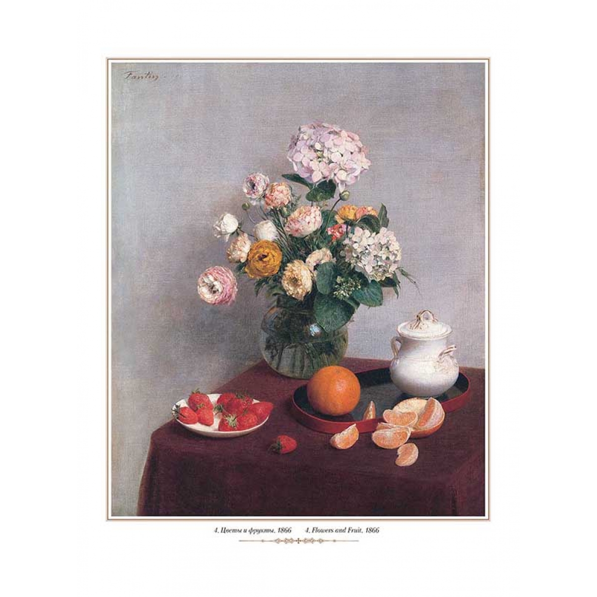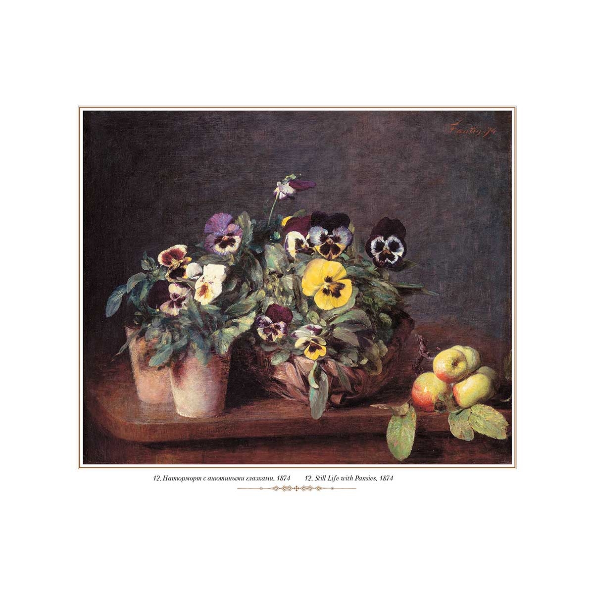 В альбоме представлены 22 работы Анри Фантен-Латура, французского художника XIX века, писавшего и портреты, особенно групповые, и натюрморты, и аллегорические сцены.