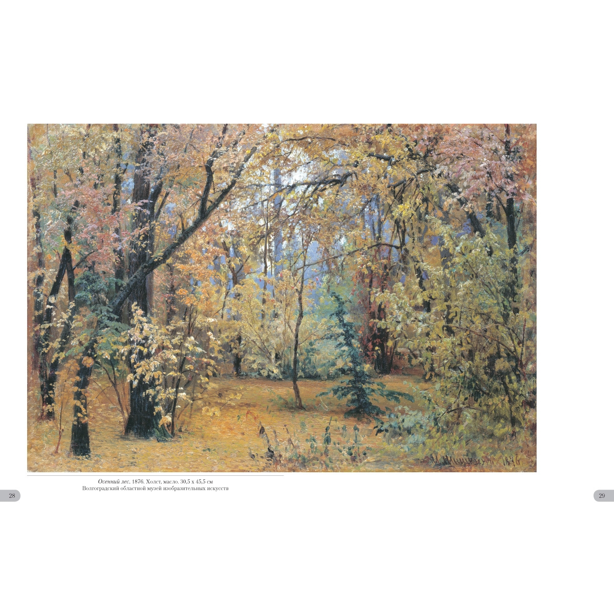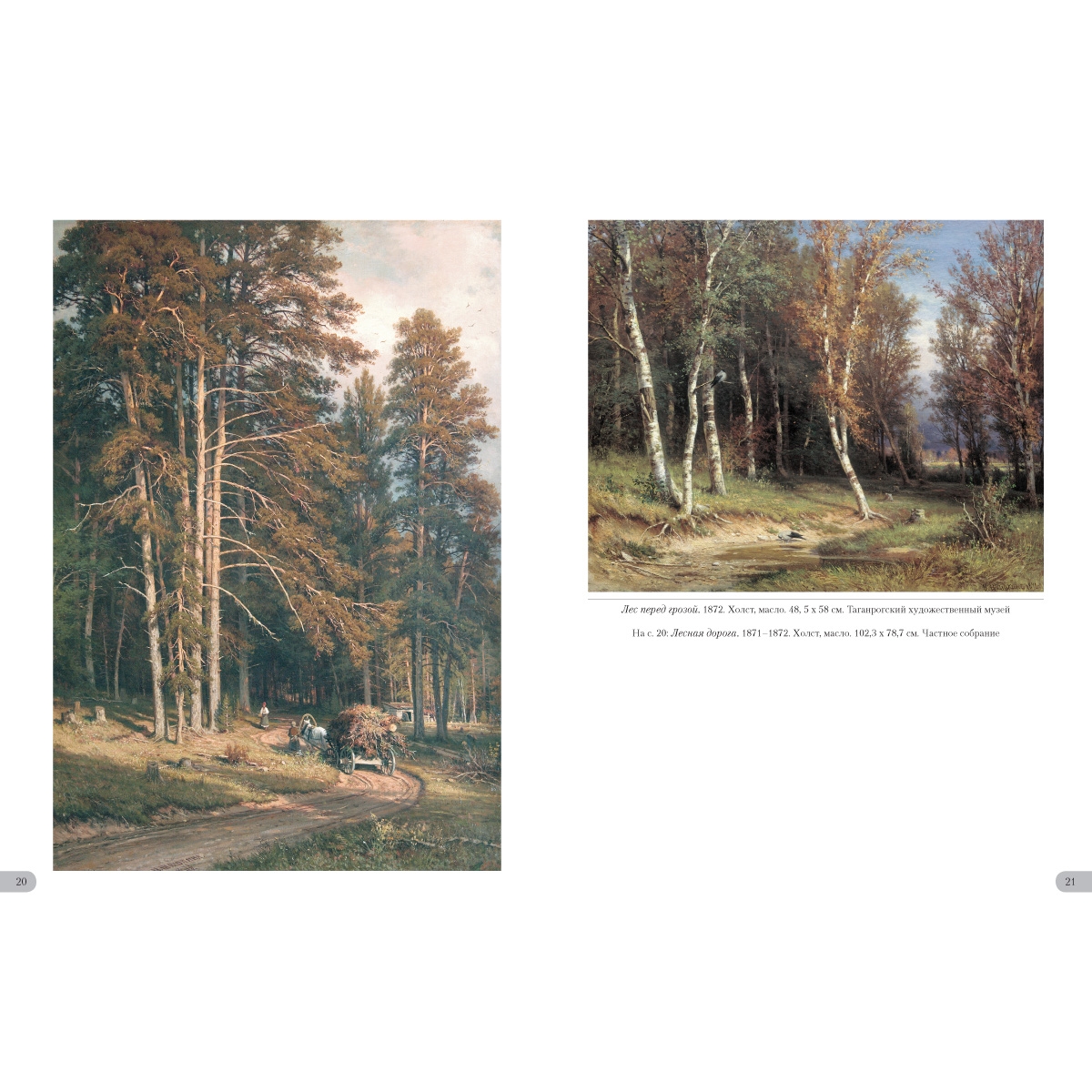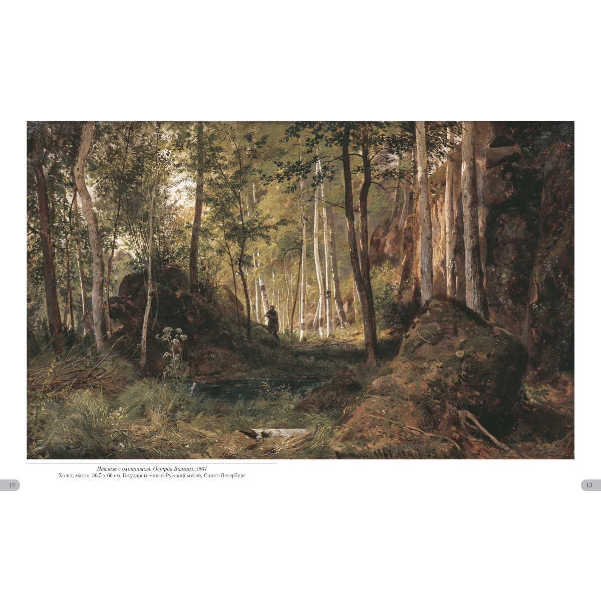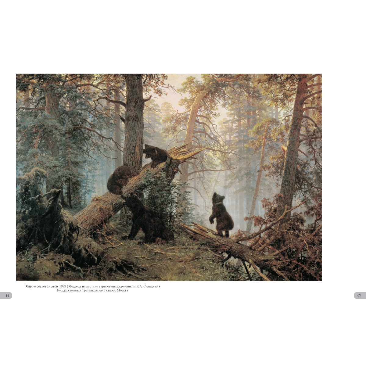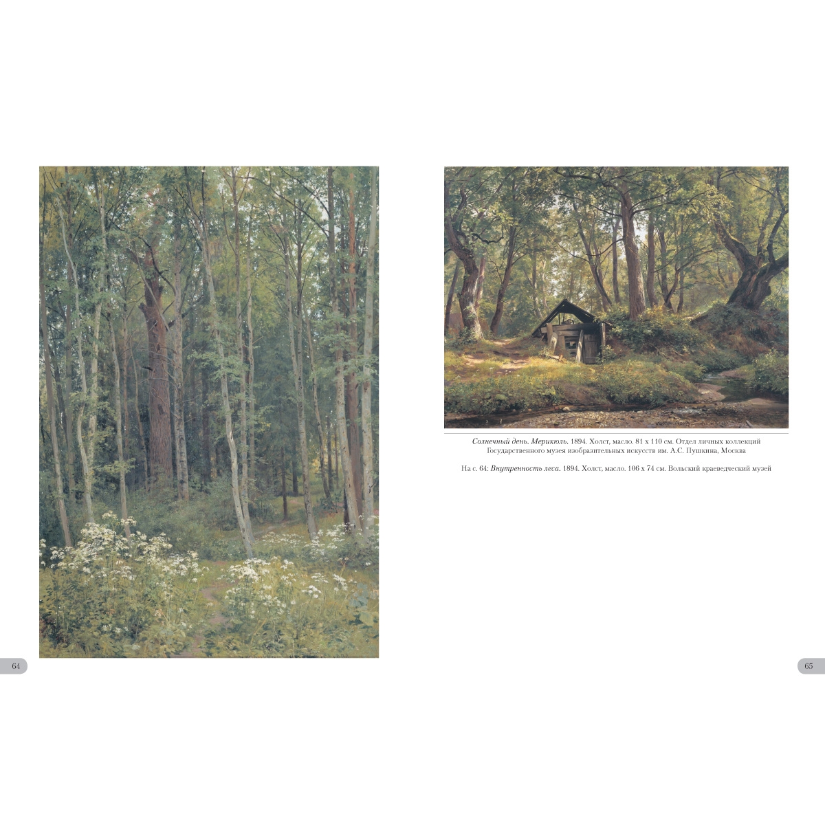 - Список художников и их полотен или именной указатель (если есть) УКАЗАТЕЛЬ ПРОИЗВЕДЕНИЙ Богатый лог (Пихтовый лес на реке Каме). 1877 32–33 Буковый лес в Швейцарии. 1863 4–5 Бурелом. 1888 46–47 В лесу графини Мордвиновой. Петергоф 1891 56–57 В лесу. Из леса с грибами. 1883 35 В роще. 1865 8–9 Внутренность леса. 1894 64 Дебри. 1881 49 Дождь в дубовом лесу. 1891 58–59 Дубовая роща. 1887 42–43 Зима. 1890 52–53 Корабельная роща. 1898 68–69 Лес весной. 1884 40 Лес вечером. 1868–1869 14–15 Лес перед грозой. 1872 21 Лес. 1880-¬е 34 Лесная глушь. 1872 22 Лесная дорога. 1871–1872 20 Лесная заводь. Осень. 1872 24 Лесное кладбище. 1893 50–51 Лесной пейзаж с цаплями. 1870 18–19 Лесной пейзаж. 1874 3 Лесные дали. 1884 38–39 Летний день. 1891 54–55 Мостик в лесу. 1895 67 Опушка леса. 1884 41 Осенний лес. 1876 28–29 Пасека в лесу. 1876 30 Пейзаж с охотником. Остров Валаам. 1867 12–13 Первый снег. 1875 26–27 Прогулка в лесу. 1869 16 Рубка леса. 1867 10–11 Ручей в березовом лесу. 1883 36–37 Ручей в лесу (На косогоре). 1880 31 Солнечный день. Мерикюль. 1894 65 Сосновый бор. 1895 66 Сумерки. 1874 25 Тевтобургский лес. 1865 6–7 Темный лес. 1890 48 Утро в сосновом лесу. 1889 44–45 Цветы на опушке леса. 1893 62–63 Часовня в лесу. 1893 70
