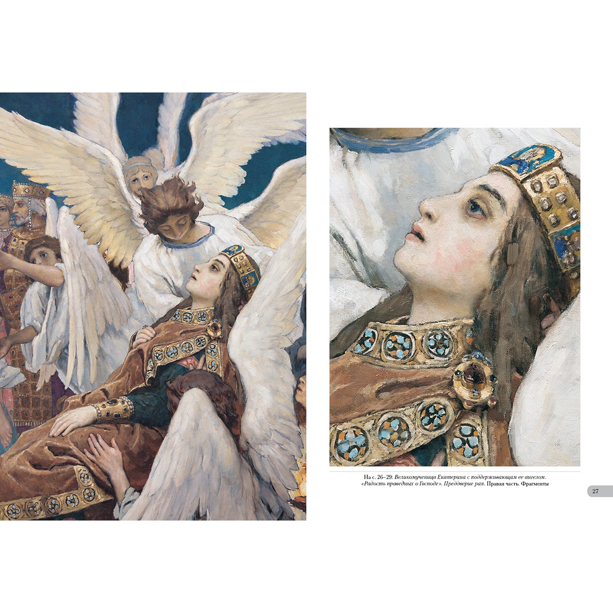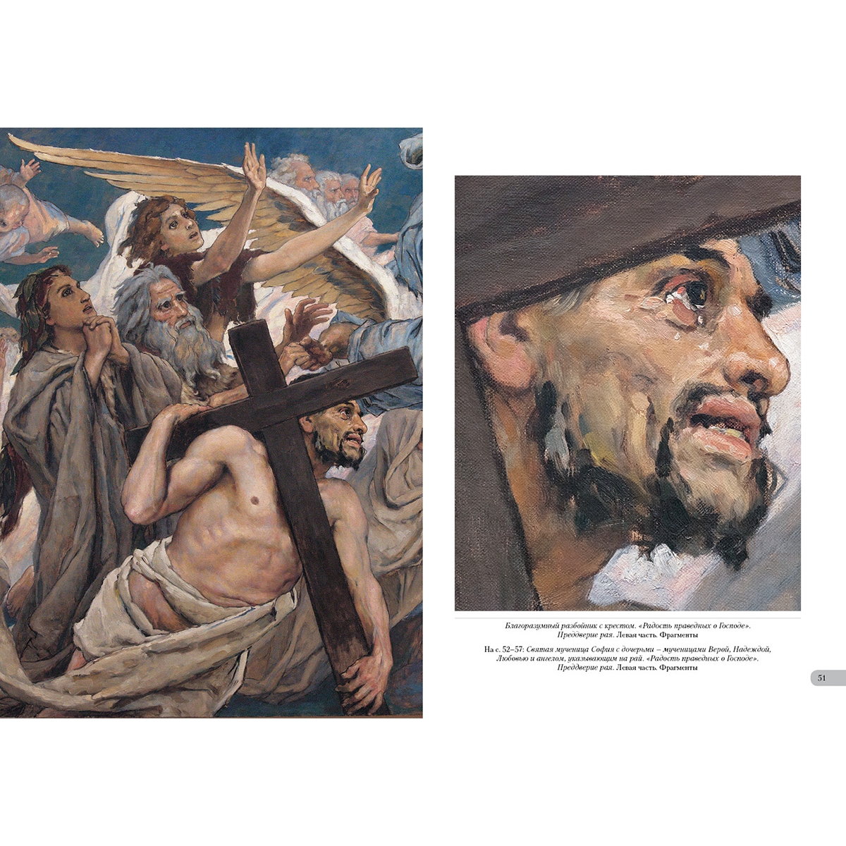 Триптих «Радость праведных о Господе. Преддверие рая» для Владимирского собора в Киеве В.М. Васнецов создавал целых десять лет. Художнику пришлось сделать около 400 живописных рисунков, создать 15 картин, 30 отдельных фигур и немало орнаментов. Он писал на холсте маслом, гуашью, акварелью, тушью с применением белил и бронзовой позолоты. Когда работа была сделана, журнал «Мир искусства» написал: «Это выдержанное цельное творение, в котором чувствуется живой порыв и большое декоративное чутье».