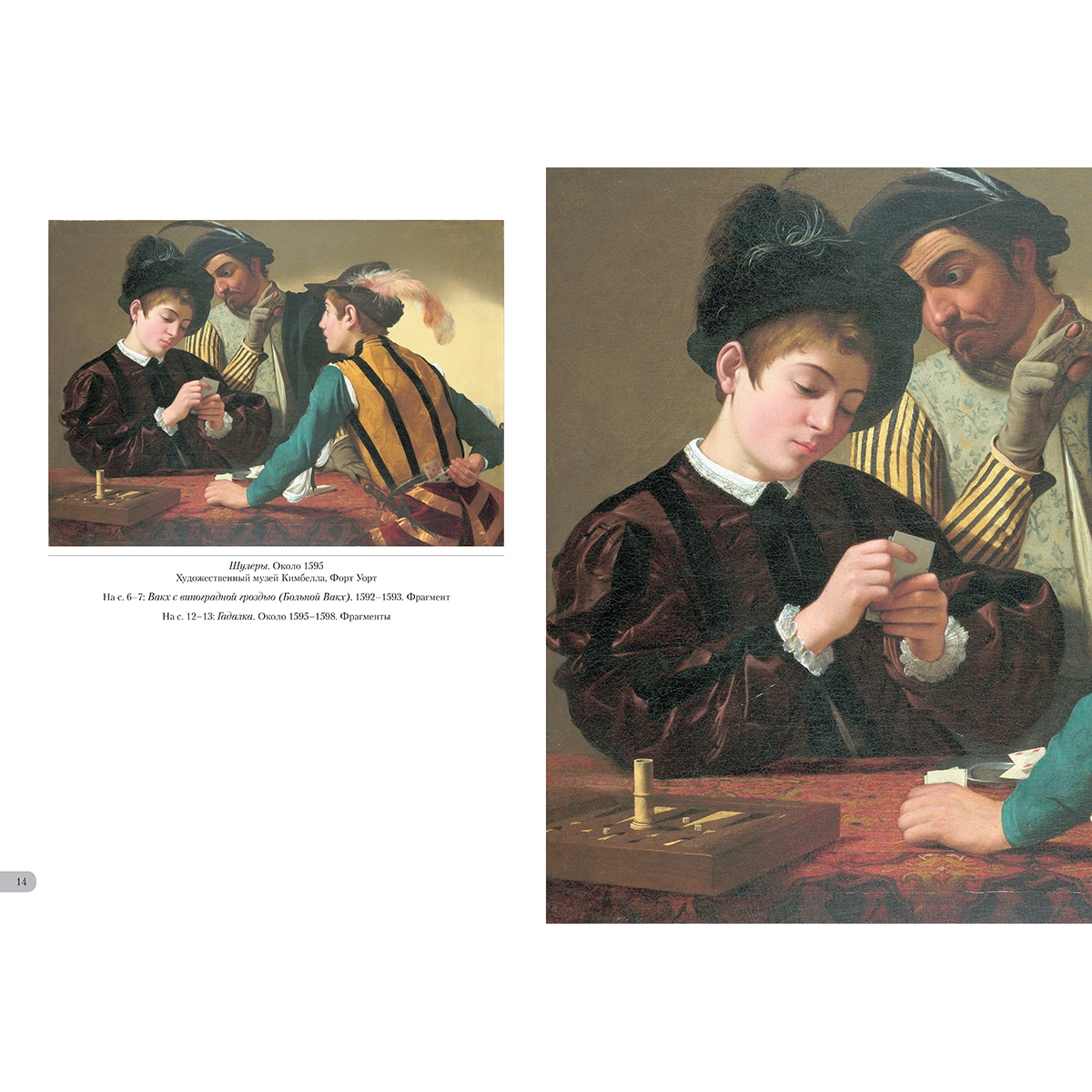 Список художников и их полотен или именной указатель Алоф де Виньякурт (1547–1622) с пажом. Около 1608 67 Амур-победитель. Около 1601 61 Вакх с виноградной гроздью (Больной Вакх). 1592–1593 5 Гадалка. Около 1595–1598 10–11 Зубодер. 1607–1610 70 Корзина с фруктами. Около 1595 22 Лютнист. 1595–1596 49 Лютнист. Около 1596 44 Мальчик, чистящий плод. Около 1592–1593 3 Медуза. 1595–1598 38 Мужской портрет (Сципионе Боргезе?). 1598–1604 58 Музыканты. Около 1595 41 Нарцисс. 1594–1596 35 Натюрморт с фруктами на каменной полочке. Около 1603 64–65 Портрет Маффео Барберини (1568–1644) в будущем папы Урбана VIII (1623–1644) 55 Портрет Маффео Барберини (1568–1644), в будущем папы Урбана VIII (1623–1644). Около 1598 54 Портрет фра Антонио Мартелли. 1608–1610 66 Спящий Амур. Около 1608 68–69 Удача. Около 1594–1595 8–9 Шулеры. Около 1595 14 Юноша с корзиной фруктов. 1593–1595 19 Юноша, укушенный ящерицей. Около 1594–1596 25 Юноша, укушенный ящерицей. Около 1595–1600 28 Юный Вакх. 1595–1597 30 Юпитер, Нептун и Плутон. Около 1597–1600 52