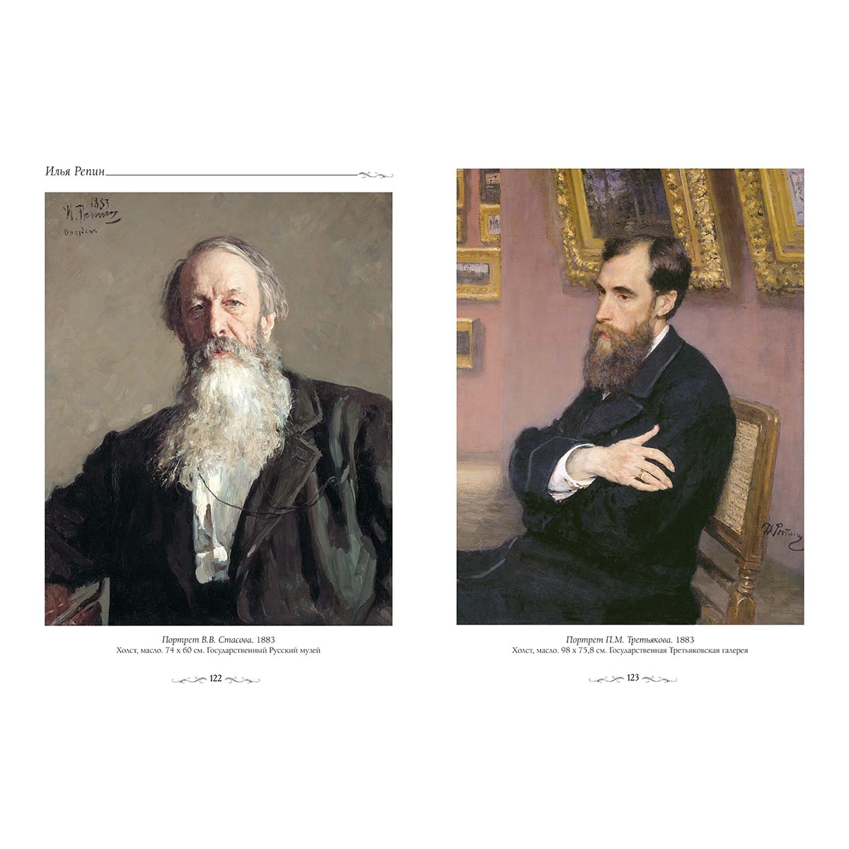 Указатель произведений Автопортрет. 1878 4 Автопортрет. 1878 6 Автопортрет. 1887 8 Автопортрет. 1894 9 Автопортрет. 1920 7 Автопортрет с Натальей Борисовной Нордман. 1903 76 Арест пропагандиста. 1880–1892 194 А.С. Пушкин читает свою поэму перед Гавриилом Державиным на лицейском экзамене в Царском Селе 8 января 1815 года. 1911 50–51 Белорус. 1892 82 Блондинка. Портрет Ольги Тевяшевой. 1898 149 Букет цветов. 1878 61 Бурлаки на Волге. 1870–1873 22–23 Великий князь Владимир Александрович Романов. 1910. Этюд к картине Торжественное заседание Государственного совета 7 мая 1901 года в честь столетнего юбилея со дня его учреждения. 1903 191 Венчание Николая II и великой княжны Александры Федоровны. 1894 205 Вечорницы. 1881 30–31 Воскрешение дочери Иаира. 1871 14–15 Выбор царской (великокняжеской) невесты. 1884–1887 42 Голгофа (распятие Христа). Эскиз. 1869 12 Девочка с букетом (Вера Репина). 1878 66 Д.М. Сольский. Этюд к картине Торжественное заседание Государственного совета 7 мая 1901 года в честь столетнего юбилея со дня его учреждения. 1903 192 Женский портрет (Е.Д. Боткина?). 1881 158 Запорожцы пишут письмо турецкому султану 52 Запорожцы пишут письмо турецкому султану. 1880–1891 54–55 Запорожцы пишут письмо турецкому султану. Эскиз одноименной картины. 1889–1896 53 За роялем. 1905 164 Иван Грозный и сын его Иван 16 ноября 1581 года. 1885 45 Иеремия на развалинах Иерусалима. Эскиз. 1867 13 И.Л. Горемыкин и Н.Н. Герард. Этюд к картине Торжественное заседание Государственного совета 7 мая 1901 года в честь столетнего юбилея со дня его учреждения. 1903 190 Иов и его друзья. 1869 10–11 Какой простор! 1903 36–37 Коллекционер И.Е. Цветков. 1907 172 К.П. Победоносцев. Этюд к картине Торжественное заседание Государственного совета 7 мая 1901 года в честь столетнего юбилея со дня его учреждения. 1901–1903 189 Крестный ход в Курской губернии. 1880–1883 32–33 Л.Н. Толстой босой. 1901 101 Л.Н. Толстой в лесу. 1891 103 Л.Н. Толстой за работой в Ясной Поляне. 1891 99 Манифестация 17 октября 1905 года. 1907–1911 198–199 Михаил Иванович Глинка в период сочинения оперы «Руслан и Людмила». 1887 132 Мужик с дурным глазом. 1877 81 Мужичок из робких. Этюд. 1877 80 На дерновой скамье. 1876 28–29 На мостике в парке. 1879 35 «На Родину». Герой минувшей войны. 1878 83 «На солнце». Портрет Надежды Репиной, дочери художника. 1900 70 Не ждали. 1884–1888 195 Николай Мирликийский избавляет от смерти трех невинно осужденных. 1888 18 «Осенний букет». Портрет Веры Репиной, дочери художника. 1892 71 Отдых. Портрет В.А. Репиной, жены художника. 1882 68 Пахарь Лев Николаевич Толстой на пашне. 1887 96–97 Портрет А.А. Фета. 1882 94 Портрет адвоката Лоренца. 1897 178 Портрет академика И.П. Павлова. 1924 137 Портрет актера, драматурга и режиссера В.Д. Ратова (С.М. Муратова). 1910 176 Портрет актрисы Любови Николаевны Сазоновой-Шуваловой. 1899 160 Портрет актрисы П.А. Стрепетовой. 1882 145 Портрет Александры Павловны Боткиной. 1901 156 Портрет Алексея Константиновича Толстого. 1896 106 Портрет А.П. Боголюбова. 1876 118 Портрет артиста В.В. Самойлова. 1902 147 Портрет артистки Беллы Горской. 1910 165 Портрет артистки С.М. Драгомировой. 1889 84 Портрет А.Ф. Кони. 1898 181 Портрет Б.А. Каминки. 1908 170 Портрет баронессы Варвары Ивановны Икскуль фон Гильденбандт. 1889 153 Портрет Валентины Серовой в образе царевны Софьи Алексеевны. 1878 46 Портрет В.А. Репиной, жены художника. 1876 64 Портрет В.В. Битнера. 1912 168 Портрет В.В. Стасова. 1883 122 Портрет В.Д. Спасовича. 1891 171 Портрет В.Е. Репина, брата художника. 1867 63 Портрет великого князя Константина Константиновича Романова. 1891 1