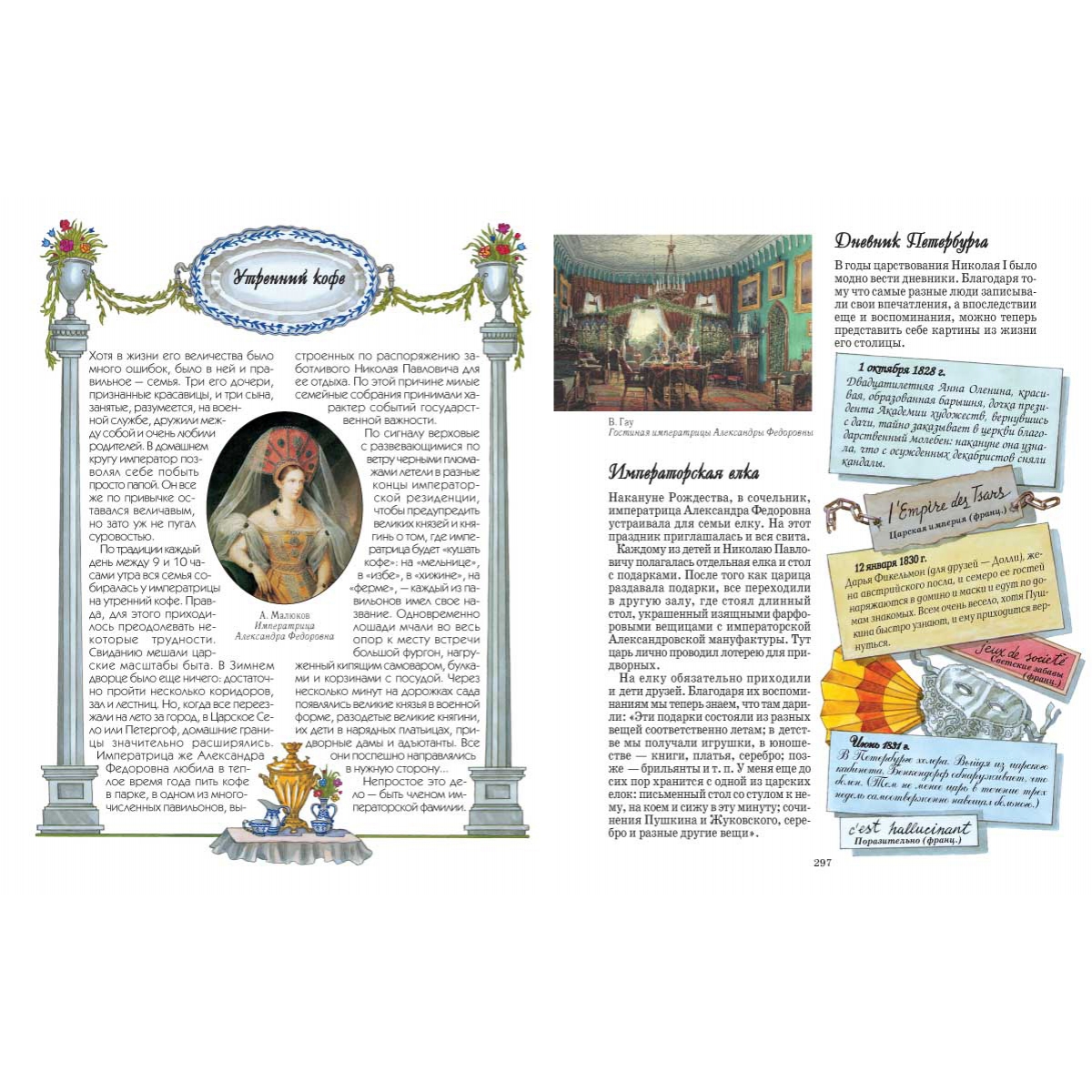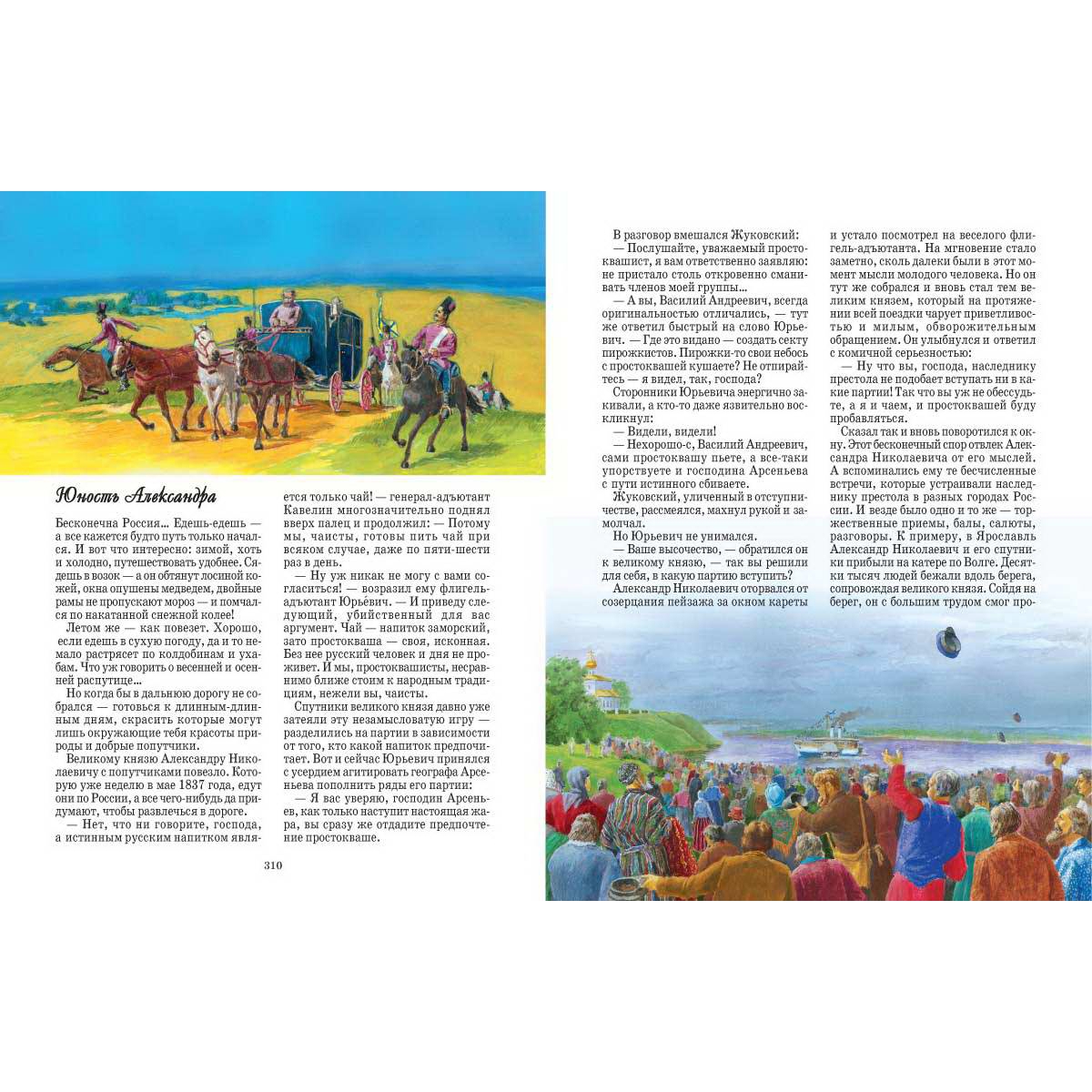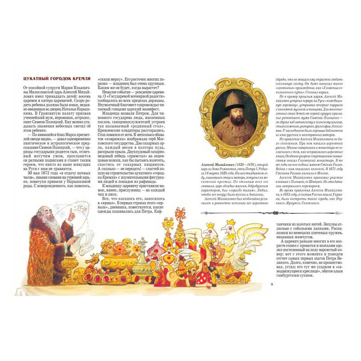 В сборник вошли повести, ранее выходившие в серии «История России» и имевшие успех у наших читателей. В книгах рассказано о правлении императоров, каждый из которых внес свою лепту в развитие Российской державы. Благодаря их дипломатии и реформам в области законодательства Россия перед революцией в начале XX века занимала передовые позиции в экономике и пользовалась международным авторитетом. Повести, вошедшие в книгу, написаны профессиональными писателями, сумевшими ярко и увлекательно рассказать о прошедших временах. Сборник оформлен репродукциями с картин великих русских художников. Дизайн книги предполагает также использование фотографий, икон, портретов, миниатюр и пр. Сборники этой серии обязательно снабжены именным указателем. Дополнительный материал, в том числе иллюстративные словари, расширит представление читателей о событиях, оказавших влияние на развитие нашего отечества. Предлагаемый читателю сборник собрал под одной обложкой рассказы о событиях, охватывающих два века власти императорской династии. В это время правили Петр Великий, Екатерина Великая, Александр I Благословенный, Александр II Освободитель, Александр III Миротворец, Николай II. Все они любили Россию и многое сделали для ее блага.Надеемся, что книга будет полезна нашему главному читателю – школьникам среднего и старшего возраста. Она может быть интересна родителям, преподавателям школ и училищ. В сборник «Российские императоры» вошли повести, рассказывающие о судьбах тех, кто более двух веков стоял во главе России. Не все у них получалось, не все реформы были доведены до конца, но каждый искренне любил свою родину, желал блага ее народу, стремился превратить Российскую державу в процветающее государство. Содержание Петр I 7 (Юрий Абрамович Крутогоров) Императрица Елизавета — дочь Петра Великого 57 (Наталия Зоревна Соломко) Екатерина Великая 105 (Нина Густавовна Орлова) Павел I 153 (Наталия Зоревна Соломко) Александр I Благословенный 203 (Наталия Валентиновна Ермильченко) Николай I 253 (Наталия Валентиновна Ермильченко) Александр II Освободитель 301 (Сергей Вячеславович Перевезенцев) Александр III Миротворец 351 (Наталия Зоревна Соломко) Николай II — последний российский император 399 (Наталия Зоревна Соломко) приложения - Иллюстрированные словари: «Флот Петра I», «Эпоха Петра I», «Вооружение и армия», «Форма гатчинских войск», «Военная форма времен царствования Павла I», «Военные кампании и походы в царствование Павла I», «Огнестрельное оружие XIX века», «Холодное оружие», «Военная форма времен царствования Александра II», «Реформы Александра II», «Сподвижники царя Александра III», «Военная форма времен царствования Александра III», «Артиллерия второй половины и конца XIX века», «Броненосные корабли русского флота конца XIX века», «Русский морской мундир конца XIX века», «Императоры и императрицы на российском престоле (1721–1917)», «Император Николай II. Даты и события жизни» Карты: «Российская империя при Петре I», «Карта наступления войск Наполеона», «Карта отступления войск Наполеона», «Крымская (Восточная) война. 1853—1856», «Русско-турецкая война. 1877—1878» об авторах Соломко Наталия Зоревна – детский писатель. Родилась в 1950 г. в городе Свердловске (Екатеринбурге). Писала с детства. В отрочестве и юности занималась в театральной студии. В начале 1970-х работала режиссеро