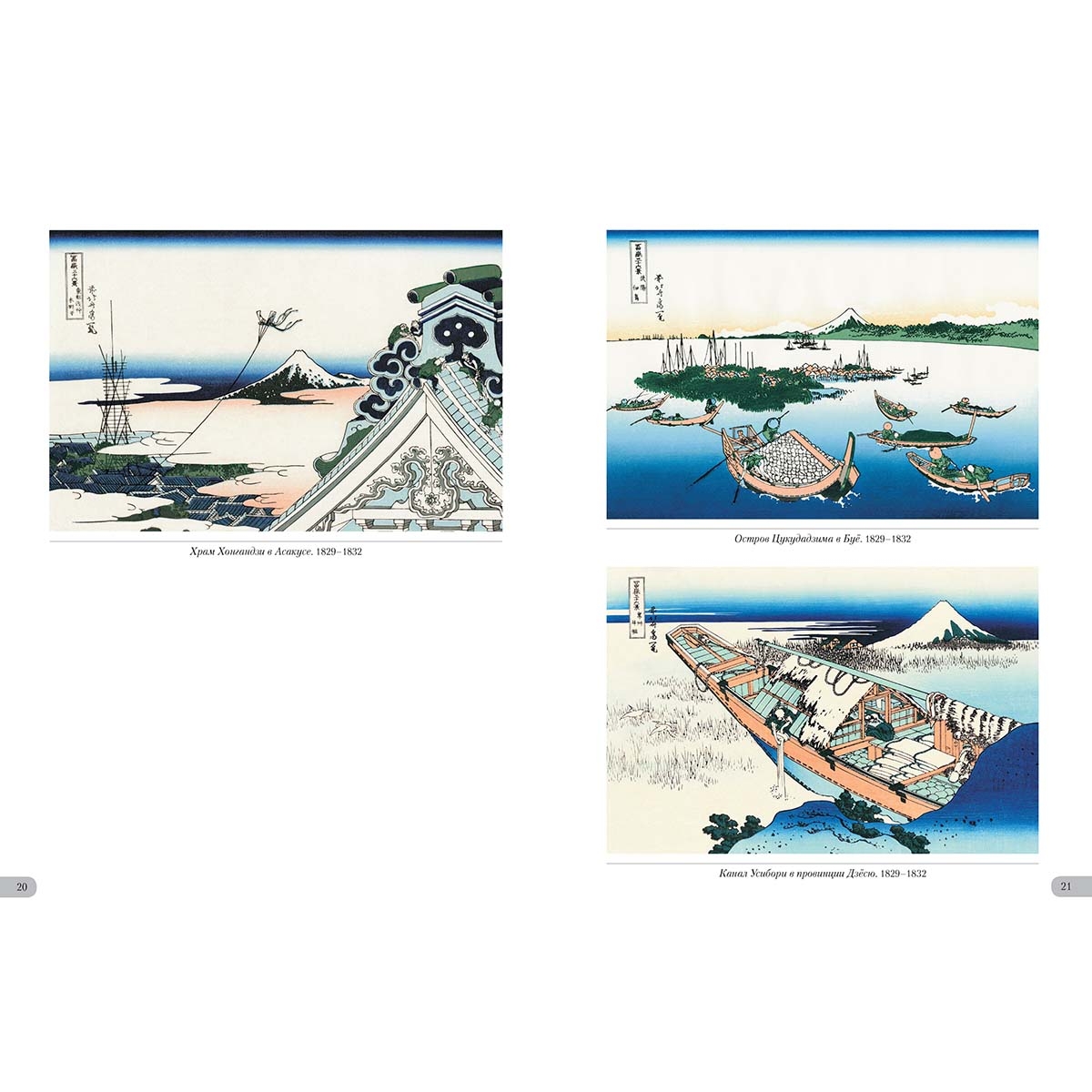Список художников и их полотен или именной указатель Болото Кадзикадзава в Косю. 1829–1832 22–23 Большая волна в Канагаве. 1829–1832 4–5 Бухта Эдзири в провинции Сунсю. 1829–1832 26–27 В горах Тотоми. 1829–1832 28 Вид на гору Фудзи из развлекательного квартала в Сэндзю. 1829–1832 50 Вид на Фудзи из Каная, на дороге Токайдо. 1829–1832 60–61 Вид на Фудзи с горы Готэнъяма у реки Синагава. 1829–1832 52–53 Вид Фудзи от чайных плантаций Катакура в провинции Цуруга. 1829–1832 58 Внезапный дождь под горой. 1829–1832 7 Водяная мельница в Ондене. 1829–1832 35 Восхождение на гору. 1829–1832 62 Горный перевал в Косю. 1829–1832 7 Деревня Сэкия на реке Сумидагава. 1829–1832 40–41 Ёсида на тракте Токайдо. 1829–1832 36 Залив Нобото. 1829–1832 43 Изображение пляжа Тагоноура в Эдзири, тракт Токайдо. 1829–1832 24 Канал Усибори в провинции Дзёсю. 1829–1832 21 Кривая сосна в Аояме. 1829–1832 12 Местность Умэдзава в Сосю. 1829–1832 17 Морской путь в Кадзусу. 1829–1832 39 Мост Маннэн в Фукагаве. 1829–1832 8–9 Мост Нихонбаси в Эдо. 1829–1832 39 Мост Сэндзю в провинции Мусаси. 1829–1832 14–15 Накахара в провинции Сосю. 1829–1832 54 Низовье реки Мэгуро. 1829–1832 34 Ночной вид на мост Рёгокубаси с берега реки Оммаяга. 1829–1832 32–33 Обратная сторона Фудзи. Вид со стороны реки Минобугава. 1829–1832 45 Озеро в Хаконе в провинции Сосю. 1829–1832 44 Озеро Сувако в Синсю. 1829–1832 25 Оносиндэн в провинции Сунсю. 1829–1832 56–57 Остров Цукудадзима в Буё. 1829–1832 21 Остров Эносима в провинции Сосю. 1829–1832 34 Отражение в озере Мисака в провинции Косю. 1829–1832 45 Перевал Мисимагоэ в провинции Косю. 1829–1832 24 Победный ветер. Ясный день, или Красная Фудзи. 1829–1832 6 Побережье Ситиригахама в Сосю. 1829–1832 17 Равнина Фудзимигахара в провинции Овари. 1829–1832 19 Район Сундай в Эдо. 1829–1832 10–11 Район Ходогая, тракт Токайдо. 1829–1832 46 Река Тама в Бусю. 1829–1832 16 Река Татэкава в Хондзё. 1829–1832 48–49 Садзаэ-до, храм Пятисот Архатов. 1829–1832 30 Снежное утро на реке Коисикава. 1829–1832 31 Суруга-тё в Эдо. 1829–1832 31 Утренняя заря в Исава провинции Косю. 1829–1832 38 Храм Хонгандзи в Асакусе. 1829–1832 20 |