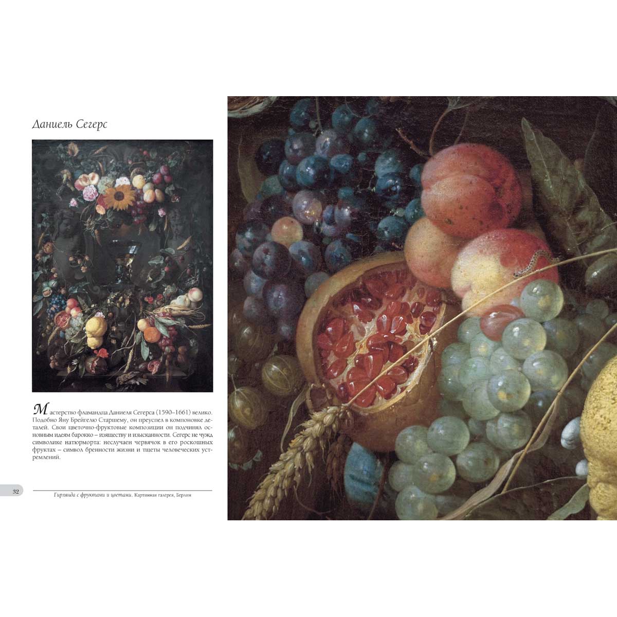 В книге раскрываются принципы создания фруктового натюрморта на протяжении XVII–XIX вв. На натюрмортах они становились тогда не только изображениями еды, но и эстетическими объектами, несущими информацию о людях эпохи, их представлениях о мире. В книге представлены работы, раскрывающие основные принципы создания фруктового натюрморта на протяжении двух столетий – XVII–XIX вв. Раскрываются различия в способах изображения, принятых в различных национальных школах, хотя основные критерии европейского натюрморта общие для всех стран. Раскрыты основные значения основных фруктов, показано, как из фруктового натюрморта складывалось «послание», обращенное художником к заказчику или к зрителю. Фрукты и овощи, подобно цветам, обладают значениями в культуре, и в книге эти значения указываются. Плоды обращены сразу к трем чувствам человека – к зрению, обонянию и вкусу. А вкус, в свою очередь, в XVII веке приобретает не только буквальное значение, но и еще одно – умение человека наслаждаться произведениями искусства. Поэтому фрукты на натюрмортах становятся не только изображениями еды, но и важными эстетическими объектами, несущими в себе информацию о людях той или иной эпохи и их представлениях о мире. Читателю будет интересно узнать, что символика фруктов тесно связана со строением человеческого тела. Сок граната или красное виноградное вино уподоблялись Крови Христовой, а затем – и любой праведной крови, и тоже связывались с мотивами бессмертия и воскресения. Приведены основные значения фруктов в искусстве. Указатель произведений АЛСТ, ВИЛЛЕМ ВАН Натюрморт – 140 Натюрморт с фруктами, мышкой и бабочками. Около 1677 – 141 АРТСЕН, ПИТЕР Торговка за прилавком. 1567 – 42 Христос в доме Марфы и Марии. 1553 – 3 АРЧИМБОЛЬДО, ДЖУЗЕППЕ Лето. 1573 – 47 Четыре времени года в одном портрете. Около 1590 – 51 АСТ, БАЛТАЗАР ВАН ДЕР Натюрморт с фруктами – 114 Натюрморт с фруктами. 1620-е – 112–113 БАГЕР, ЙОХАН ДАНИЕЛЬ Натюрморт с фруктами. 1778. Фрагмент – 198 БАЛЕН СТАРШИЙ, ХЕНДРИК ВАН Аллегория Флоры – 7 БАЛЕН СТАРШИЙ, ХЕНДРИК ВАН, БРЕЙГЕЛЬ СТАРШИЙ, ЯН Богоматерь с Младенцем в цветочной гирлянде. Около 1621 – 9 Кибела и времена года в гирлянде фруктов. До 1618 – 6 БЕЙЕРЕН, АБРАХАМ ХЕНДРИКС ВАН Натюрморт с лобстером и большим оловянным кувшином. Около 1645–1650 – 133 БЕКЕЛАР, ИОАХИМ Натюрморт с торговкой. 1564. Фрагмент – 44–45 БЕРЕНЦ, КРИСТИАН Цветы и фрукты – 175 БЕРТ, ОСИАС Натюрморт – 105 Натюрморт с серебряной вазой и фруктами – 106–107 БОГДАНИ, ЯКОБ Вишня, слива и персики. 1720 – 166 БОСХАРТ СТАРШИЙ, АМБРОЗИУС Фруктовый натюрморт с раковинами и насекомыми – 101 БРЕЙГЕЛЬ, АБРАХАМ Гранаты, яблоки, дыни, груши, сливы и садовник, собирающий виноград – 38 Женщина с фруктами. 1669. Фрагмент – 40–41 ВААРДЕН, ЯН ВАН ДЕР Виноград и утренний свет. 1857 – 235 Фрукты и цветы на постаменте. 1860. Фрагмент – 234 ВОС, ПАУЛЬ ДЕ Кладовая. 1616 – 31 ГИЛЛИС, НИКОЛАС Накрытый стол. 1601 – 102–103 ГИЛЛЬМАНС СТАРШИЙ, ЯН ПАУВЕЛЬ Бюст Мадонны, обрамленный гирляндой фруктов. 1660-е – 130 Натюрморт с фруктами и серебряным блюдом с селедкой. 1670 – 131 ГИРАРДС, ДЖАСПЕР Натюрморт с лобстером, моллюсками и фруктами. 1648 – 134 ДАЙН, ГЕРАРД ВАН Натюрморт с вазой фруктов и рыбой. 1654–1659 – 162 ДАЛЬ, ЖАН ФРАНСУА ВАН Корзина с фруктами. 1801–1802 – 219 Натюрморт с виноградом и персиками в корзине. 1809. Фрагмент – 218 ДЮПЮИ, ПЬЕР Персики, виноград, сливы и гранаты. Около 1670. Фрагм