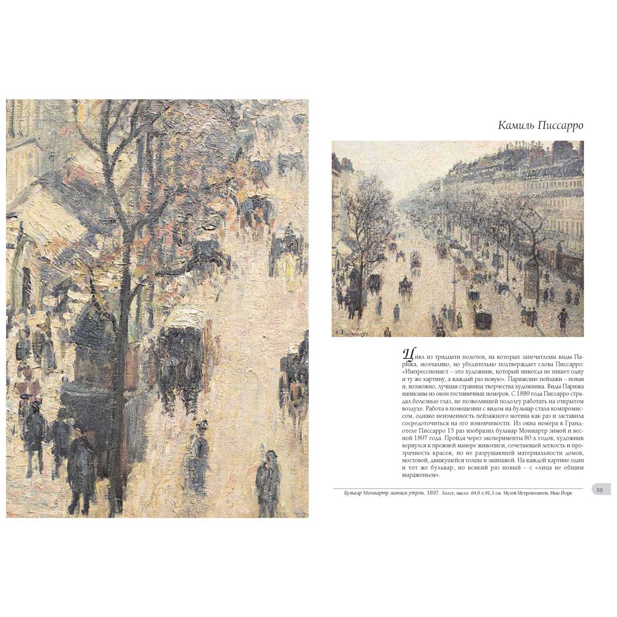 В настоящем издании импрессионистский пейзаж представлен во всем разнообразии творческих индивидуальностей и мотивов. Составители альбома особое внимание уделили тем художникам, чье творчество в течение долгого времени оставалось в тени более успешных и известных современников. Для художников следующего поколения – Поля Сезанна, Поля Гогена, Винсента Ван Гога – импрессионизм стал отправной точкой, из которой они отправились каждый своей дорогой. Пейзаж был для импрессионистов не просто одним из жанров. Он стал творческой лабораторией, где отрабатывалась техника новаторской живописи и где художник чувствовал себя наиболее свободным, не связанным с необходимостью угодить заказчику. Заказчиком была сама природа, а главным ее требованием – правда. Импрессионисты стали писать на пленэре, то есть вывели пейзаж из мастерской на открытый воздух. Они вернули пейзаж с задворок академического искусства и заставили считать «картины природы» явлением высокого искусства. Они сумели остановить мгновенье и дали нам возможность насладиться ускользающей красотой. Они наполнили свои полотна солнечным светом и яркими красками. Они сотворили чудо – сделали воздух видимым. Импрессионистский пейзаж, так полно представленный в этом издании, подарит читателю ощущение праздника света и цвета. Это «пиршество для глаз» сотворено из незатейливых мотивов, согрето любовью и приправлено безошибочным вкусом. Текст, сопровождающий иллюстрации, поможет познакомиться с секретами импрессионистской и постимпрессионистской пейзажной живописи и, что не менее важно, с творчеством художников, которые долгое время незаслуженно находились в тени своих более известных и более успешных собратьев. Пейзажи импрессионистов – 2 Эдуар Мане – 6 Камиль Писсаро – 15 Альфред Сислей – 51 Клод Моне – 93 Пьер Огюст Ренуар – 138 Берта Моризо, Вредерик Базиль, Гюстав Кайботт, Арман Гийомен – 151 Поль Сезан – 170 Поль Гоген – 194 Винсент Ван Гог – 200 Жорж Сёра, Поль Синьяк – 224 Указатель произведений – 238 Указатель произведений Базиль, Фредерик Бастион в Эг-Морте. 1867. Фрагмент – 150–151 Пейзаж в Шайи. 1865 – 157 Стены Эг-Морта. 1867 – 156 Ван Гог, Винсент Вид в Арле. 1889 – 215 Дома в Овере. 1890 – 204 Звездная ночь. 1889 – 218 Звездная ночь над рекой Роной. 1888 – 210 Красные виноградники в Арле. 1888 – 212 Море в Сент-Мари. 1888 – 202–203 Мост в Ланглуа в Арле. 1888 – 220 Оливковый сад – 207 Ресторан «Сирена» в Аньере. 1887 – 208–209 Сборщицы оливок – 222–223 Хижины с соломенными крышами в Кордевиле в Овер-сюр-Уаз. 1890 – 213 Хлебное поле с кипарисами. 1889. Фрагмент – 200–201 Цветущий сад с дорожкой. 1888 – 219 Церковь в Овере. 1890 – 216 Гийомен, Арман Горный пейзаж. Около 1895 – 168–169 Мост в горах. 1870-е – 163 Пейзаж с руинами. 1897 – 164–165 Сена в Шарантоне. 1878 – 167 Тропинка в снегу. 1869 – 166 Гоген, Поль Матамое (Смерть. Пейзаж с павлинами). 1892 – 196 Пейзаж в Ле Пульдю. 1890 – 194–195 Пейзаж с двумя козами. 1897 – 199 Тропическая растительность. 1887. Фрагмент – 198 Кайботт, Гюстав Крыши под снегом. 1878 – 160–161 Парусники в Аржантёе. Около 1888 – 158 Прогулка на каноэ. 1878 – 162 Мане, Эдуар Бегство Рошфора. 1881. Фрагмент – 11 Большой канал в Венеции. 1875. Фрагмент – 6–7 Дом в Рюэле. 1882 – 9 Молодая девушка в саду (Уголок сада в Бельвю). 1880. Фрагмент – 8 Судно «Керсардж» в Булони – 12–13 Улица Монье с флагами и с человеком на костылях. 1878 – 10 Моне, Клод Белые кувшинки. 1899 – 128–129 Бульвар Ка
