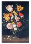 Список открыток, вошедших в набор: 1. Натюрморт с цветами и насекомыми 2. Цветы в деревянном сосуде. 1606–1607 3. Цветы в вазе Ван-Ли. Около 1610–1615 4. Ваза цветов с ирисами 5. Натюрморт с вазой с цветами, кольцом и бриллиантами. 1612 6. Букет в глиняном кувшине. 1599–1607 7. Натюрморт из роз c веточками сирени в орнаментальной каменной вазе и венком из роз, незабудок, жасмина, цикламена и других цветов, лежащих на поверхности стола. Фрагмент 8. Цветы в глиняной вазе. Около 1610–1620 9. Натюрморт с цветами в стакане. 1600 10. Ваза с цветами, ювелирные изделия, монеты и ракушки. 1606 11. Гирлянда с Мадонной, младенцем Христом и двумя ангелами. Около 1620 12. Натюрморт с цветами в вазе и бабочками. Между 1610–1625 На обложке: Ваза с цветами