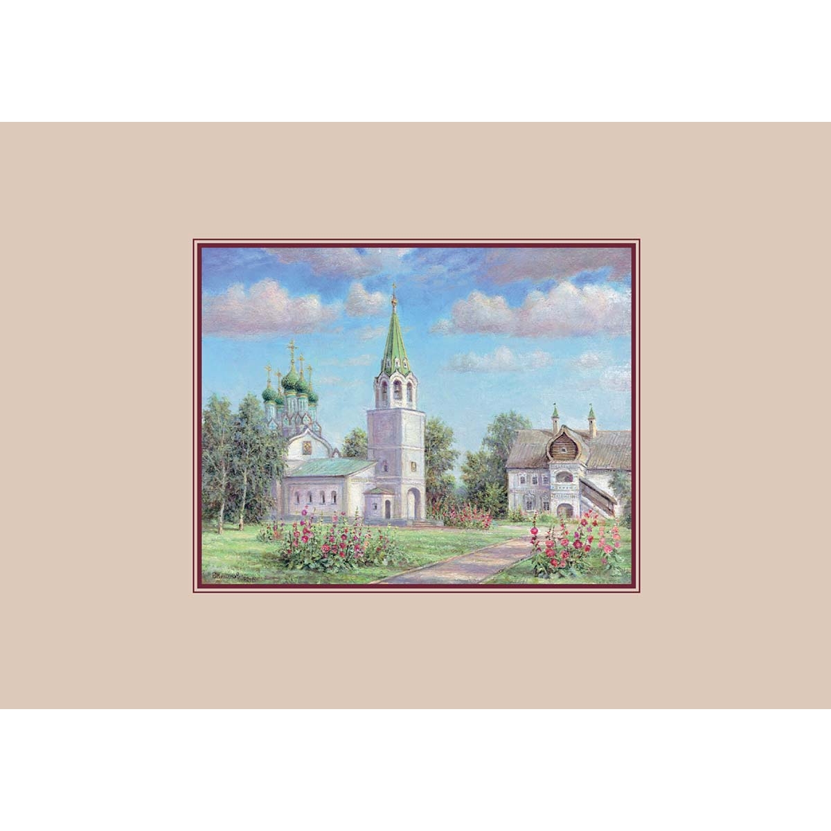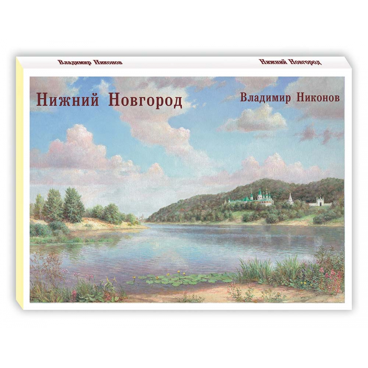 в Государственном центральном музее современной истории России, в здании Администрации Президента РФ, в Культурном центре АПН, в Арсенале Московского Кремля, в здании Сената, в Большом Кремлевском дворце, в выставочных залах Москвы, музеях и выставочных залах Подмосковья, а также в Императорском Православном Палестинском Обществе. В своем творчестве художник продолжает традиции русской реалистической школы живописи и работает в редком жанре пейзажной миниатюры. Список работ Владимира Никонова, вошедших в набор: 1. Стены Нижегородского кремля. 1995 2. Собор Михаила Архангела в Нижнем Новгороде. 1995 3. Нижний Новгород. Церковь Ильи Пророка. 2013 4. Храм иконы Божией Матери Знамение и святых Жен-Мироносиц на Верхнем посаде. Нижний Новгород. 2013 5. Церковь Собора Пресвятой Богородицы (Строгановская). Нижний Новгород. 2016 6. Нижний Новгород. Памятник Минину и Пожарскому. 2017 7. Башня Нижегородского кремля. 2016 8. Нижний Новгород. Дом писателя Е.Н. Чирикова. 2014 9. Нижний Новгород. Успенская церковь и палаты купца Олисова. 2016 10. Нижний Новгород. Здание Государственного банка на Большой Покровской улице. 2017 11. Вечер на Волге. 2016 12. Закат в Нижнем Новгороде. 1995 На обложке: Вид Печерского монастыря. Нижний Новгород. 2014