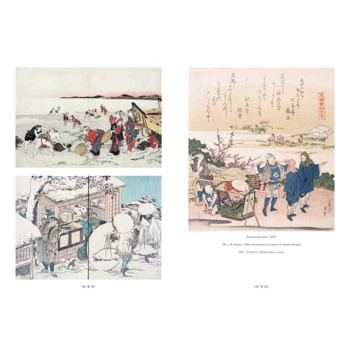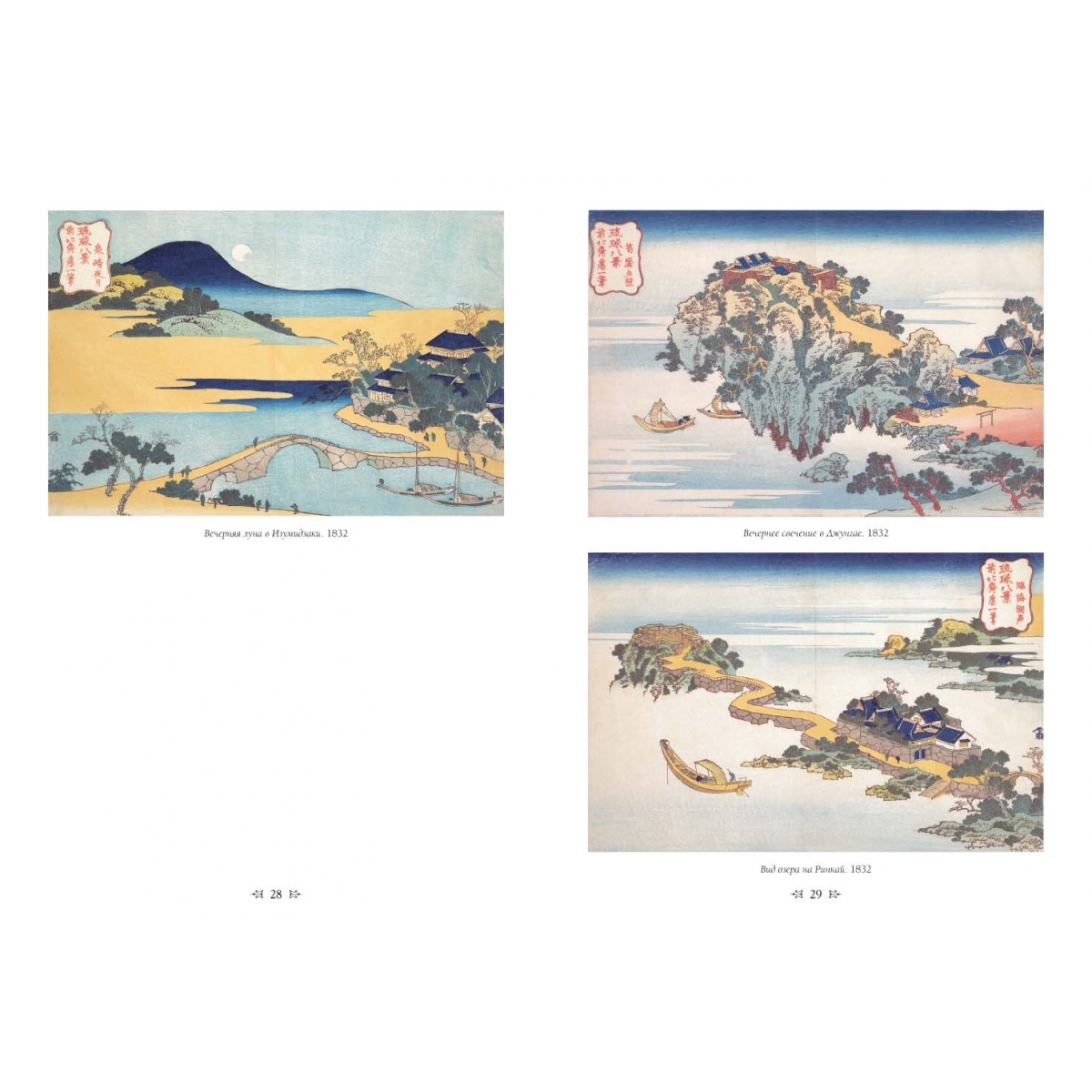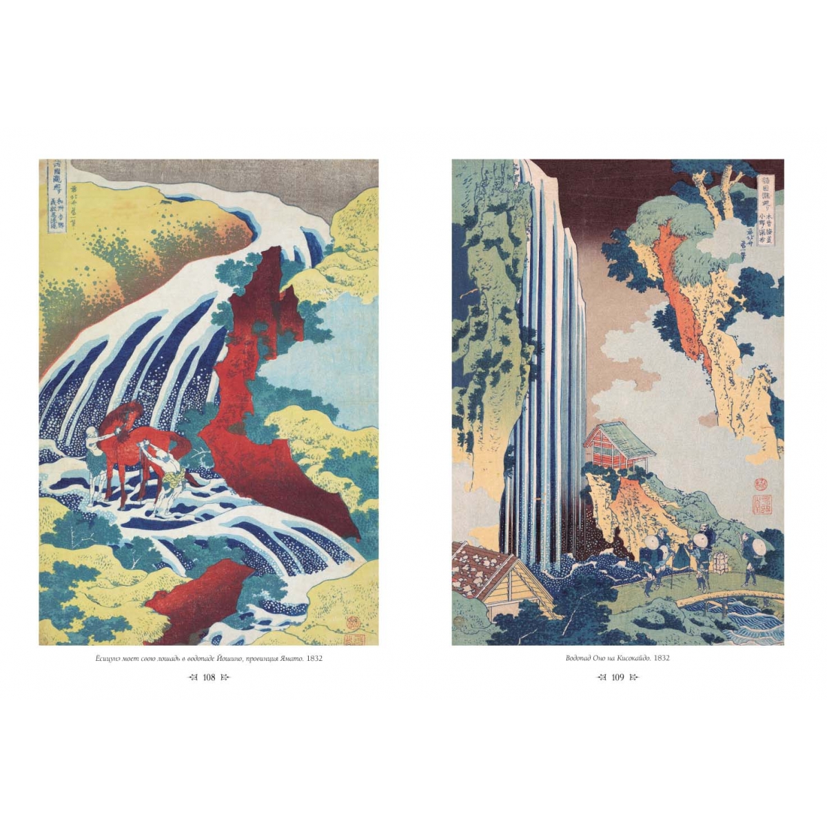 Абе-но Накамаро. 1830-е 126 Аривара-но Нарихира. 1833 122 Арочный мост в храме Камейдо Тендзин. 1830 138–139 Бамбуковая изгородь в Кумемуре. 1832 32 Банановый сад в Накашиме. 1832 30–31 Большая волна в Канагаве. 1829–1832 62–63 Бухта Эдзири в провинции Сунсю. 1829–1832 88–89 В горах Тотоми. 1829–1832 96 Ветка цветущей вишни с малиновкой. 1789 194 Вечернее свечение в Джунгае. 1832 29 Вечерняя луна в Изумидзаки. 1832 28 Вид на гору Фудзи из развлекательного квартала в Сэндзю. 1829–1832 54–55 Вид на Фудзи из Каная, на дороге Токайдо. 1829–1832 92–93 Вид на Фудзи с горы Готэнъяма у реки Синагава. 1829–1832 60 Вид озера на Ринкай. 1832 29 Вишневый цвет. 1821 9 Вишни в Йошино. 1833 119 Водопад Амида в дальних участках дороги Кисокайдо. 1827 113 Водопад Йоро в провинции Мино. 1827 112 Водопад Киётаки Каннон в Саканошита на Токайдо. 1818 117 Водопад Оно на Кисокайдо. 1832 109 Водопад Робен в Ояме, провинция Сагами. 1827 114 Водопад Тота Аой-га-Oкa. 1830 116 Водяная мельница в Ондене. 1829–1832 46 Воробьи и глицинии. 1830-е 185 Восхождение на Фудзи. 1829–1832 84 Высыпание песка. 1798 2 Гибискус и воробей. 1830 192 Голубые птицы и леспедеца. 1833 184 Горный перевал Инумэ в провинции Каи. 1829–1832 100–101 Гортензия и ласточка. 1834 189 Две женщины у павильона в снегу 7 Деревня Сэкия на реке Сумида. 1829–1832 52–53 Детские игры 3 Дождь на мосту через реку Сумида. 1803 4 Древний вид Яцухаси в провинции Микава. 1830 140 Ёсида на тракте Токайдо. 1829–1832 97 Ёсицунэ моет свою лошадь в водопаде Йошино, провинция Ямато. 1832 108 Журавли на сосне. 1820 200 Журавли. 1821 201 Закат над мостом Рёгоку с берега реки Оммаягаси. 1829–1832 50–51 Залив Нобото в провинции Шимоза. 1829–1832 60 Зеркало поэтов. 1833 17 Зимородки, камыши и утренние цветы. 1830-е 184 Зимородок с ирисами и дикими гвоздиками. 1834 191 Злодей Садакуро нападает на крестьянина Ёйтибэя. 1806 5 Змея и дыни. 1809 205 Ипомеи и древесная лягушка. 1834 175 Ирис, пионы, воробьи и стрекоза. 1830-е 186 Ирисы и луговая цикада. 1832 172–173 Кадзикадзава в Косю, провинция Каи. 1829–1832 104–105 Канал Усибори в провинции Дзёсю. 1829–1832 61 Каоё составляет экибану из цветущей вишни. 1806 19 Карп и ирис. 1808 204 Китобойный промысел у островов Гото. 1833 25 Колокольчики и стрекоза. 1833 181 Кузнечик и хурма. 1807 180 Кукушка и азалии. 1828 188 Ливень, молния ниже вершины. 1829–1832 85 Лилии. 1833 175 Ловля рыбы на реке Миято. 1832–1834 20 Ловля рыбы нахлыстом. 1830 21 Лодочный мост в Сано, провинция Козуке. 1830 134–135 Лунный свет на реке Йодо. 1833 119 Майсака 13 Маки. 1832 177 Маки. 1833 174 Местность Умэдзава в Сосю. 1829–1832 76 Минамото-но Тору. 1830-е 127 Морское ушко. 1804 204 Морской путь в Кадзусу. 1829–1832 57 Мост Висячие облака на горе Гындо недалеко от Асикага. 1834 140 Мост Кинтай в провинции Суо. 1818 136 Мост Маннэн в Фукагаве. 1829–1832 42–43 Мост Нихонбаси в Эдо. 1829–1832 34–35 Мост Сэндзю в провинции Мусаси. 1829–1832 56 Мост Тенман в провинции Сетцу. 1834 137 Мост Тогетсу в Арашияме в Ямаширо. 1830 144–145 Мост Фукуи в провинции Эчизен. 1830 132–133 Мост Яхаги в Окадзаки на Токайдо. 1830 142–143 Накахара в провинции Сосю. 1829–1832 72–73 Низовье реки Мэгуро. 1829–1832 56 Обратная сторона Фудзи. Вид со стороны реки Минобугава. 1829–1832 106 Озеро в Хаконэ в провинции Сагами. 1829–1832 78–79 Озеро Сува в Синано. 1829–1832 103 Оносиндэн в провинции Сунсю. 1829–1832 84 Оранжевые орхидеи. 1832 176 Осеннее небо в Чоко. 1832 33 Остров Цукудадзима в провинции Мусаси. 1829–1832 58–59 Остров Эносима в провинции Сосю. 1829–1832 69 Отражение Фудзи в озере Мисака в провинции Косю. 1829–1832 102 Пасущиеся лошади 17 Перевал Мисима в провинции Каи на дороге Токайдо. 1829–1832 80 Переход по льду на озе