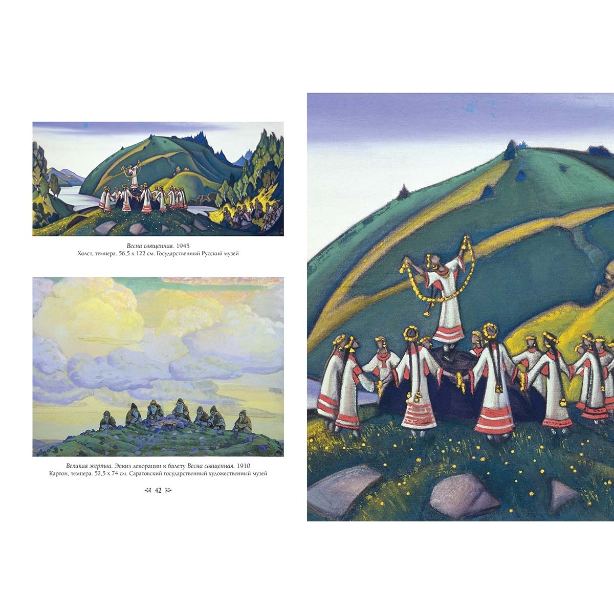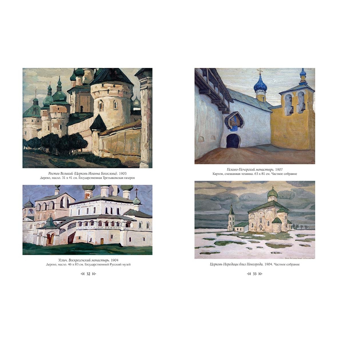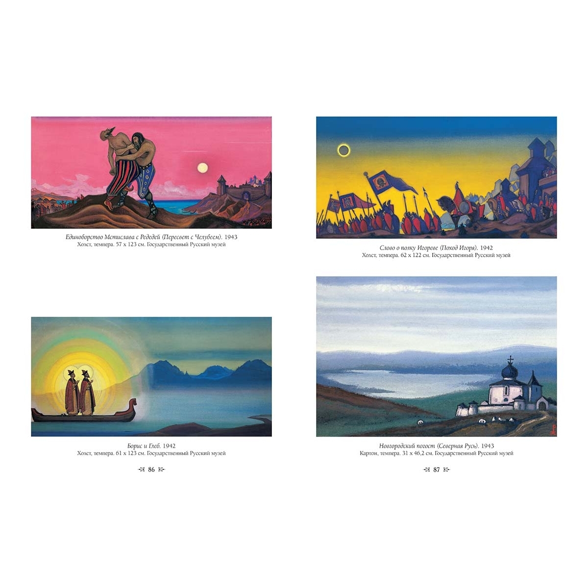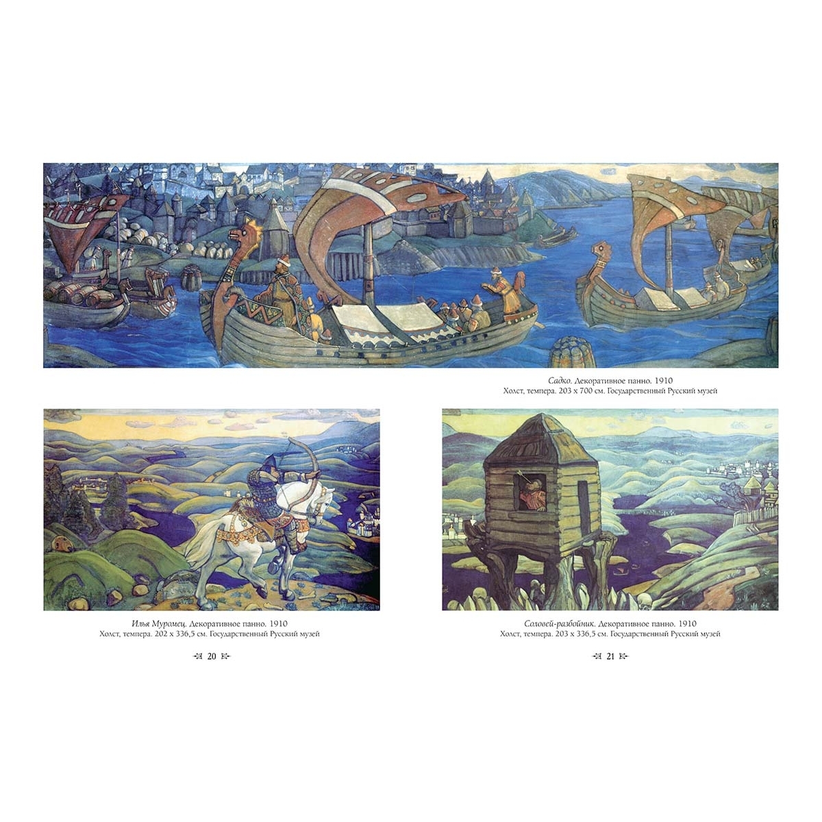 ГОЛОВИН АЛЕКСАНДР Портрет художника Н.К. Рериха. 1907 5 ГРИГОРЬЕВ БОРИС Портрет Н.К. Рериха. 1917 4 КУСТОДИЕВ БОРИС Портрет художника Н.К. Рериха. 1913 2 РЕРИХ НИКОЛАЙ «Песнь Сольвейг». 1912 46 Абд-аль-Мутталиб ищет воду («Хосров и Ширин»). 1938 166 Александр Невский поражает ярла Биргера. 1904 66–67 Армагеддон. 1936 184–185 Ашрам. Цейлон. 1931 154 Башня ужаса. 1939 187 Баян. Декоративное панно из сюиты Богатырский фриз. 1910 19 Бой со змеем. Эскиз. 1912 70 Бой. 1906 68 Борис и Глеб. 1942 86 Брамапутра (Брахмапутра). 1945 172–173 Варяжский путь. 1907 14–15 Ведущая. 1944 202 Веления неба. 1915 92 Великая жертва. Эскиз декорации к балету Весна священная. 1910 42 Весна священная. 1945 42 Вестник. 1914 17 Вестник. 1946 203 Весть Тирону. 1940 74–75 Витязь. Декоративное панно из сюиты Богатырский фриз. 1910 19 Волхов. Ладога. 1899 (?) 50 Вольга Святославович. Декоративное панно. 1910 28 Вороны (Зловещие). 1901 37 Восход солнца на поле боя. Начало 1900-х 39 Враг рода человеческого. Плакат. 1915 4 Гималаи (Жилище Такура. Гундла). 1931 143 Гималаи. 1925 143 Гималаи. 1937 158 Гималаи. 1938 174 Гималаи. Нанда-Дэви. 1944 158 Гималайский пейзаж 174 Гнездо преблагое – глазам утешение (Древо Преблагое глазам утешение). 1912 79 Гонец. «Восстал род на род». 1897 10–11 Горный пейзаж. 1925 165 Горный пейзаж. 1937 174 Город строят. 1902 31 Город. Тайны стен. 1920 107 Град обреченный. 1914 94–95 Грозный (Последний ангел). 1942 190 Грядущее. Эскиз для картины Красный всадник. 1927 125 Гуга Чохан. 1931 142 Гумран. 1932 152 Далекий север. 1902 16 Деревня. 1924 142 Дзонг. 1928 159 Дозор. 1905 24 Дом духа. 1915 109 Древнее городище (Славянская деревня) 34 Древний пейзаж. 1911 50 Древняя жизнь. Этюд. 1904 36 Древняя Русь. 1903 34 Дух Святой. 1922 53 Единоборство Мстислава с Редедей (Пересвет с Челубеем). 1943 86 Еще не ушли. Эскиз. 1917 109 Ждущая. 1941 194–195 За морями земли великие. 1910 63 Закат. Кашмир. 1943 172 Заклинатель. 1943 187 Заклятие земное. 1907 90 Заклятие (Заклятие. Терафим). 1940 135 Замок (Город). 1906 17 Замок. Эскиз к картине Град обреченный. 1913 97 Заморские гости. 1901 13 Зарево. 1914 102–103 Защитник (Облако-стрелок). 1937 164 Зловещие. 1901 37 Змиевна. 1906 35 Знамение. 1915 83 Знамя грядущего. 1925 139 Зороастр (Заратустра). 1931 134 Идолы. 1901 14 Идолы. Эскиз. 1901 28 Илья Муромец. Декоративное панно. 1910 20 Иноземные гости. 1901 13 Искандер и отшельник. 1938 166 Искушение Христа. 1933 167 Исса и голова великанова. 1939 134 Каменный век. 1910 16 Каменный век. Север. Олени. 1904 64 Каменный век. Север. Охота на моржей. 1904 64 Камень несущая (Держательница Мира). 1933 150–151 Камень. Тайные знаки. 1910-е 108 Канченджунга (Гималаи. Канченджанга) 148 Караван. 1931 130 Клад захороненный. 1947 118–119 Книга Голубиная (Помин о четырех королях). 1911 82 Книга Голубиная. Эскиз. 1922 81 Княжая охота. Вечер (Возвращение с охоты). 1901 23 Княжая охота. Утро (Утро княжьей охоты). 1901 22 Ковер-самолет. 1916 88 Ковер-самолет. 1939 188–189 Ковка меча (Нибелунги). 1941 98–99 Колдуны. 1905 89 Конь счастья. 1925 140–141 Королевский монастырь (Твердыня Тибета). 1932 156–157 Красные кони (Кони счастья). 1925 152 Красные паруса. Поход Владимира на Корсунь. 1900 83 Крик змия. 1914 112 Кришна. 1946 199 Ладак (Крепость на вершине горы). 1928–1929 159 Ладьи. 1903 26–27 Лахул. 1930-е 159 Лахул. Гималаи. 1932 159 Лесовики. 1916 52 Майтрейя Победитель. 1925 180–181 Мать Чингисхана. 1933 120 Мехески – лунный народ. 1915 114 Меч Гесару. 1931 149 Микула Селянинович. Декоративное панно. 1910 22–23 Милосердие (Сострадание). 1936 116 Могила викинга. 1908 98 Молния. 1935–1936 105 Монастырь во Пскове. Эскиз декорации к опере Псковитянка. 1920 44–45 Монастырь Шаругён. Тибет. 1928 144 Монастырь. Монголия. 1938 131 Монголия II (Поход Чингисхана). 1937–1938 12
