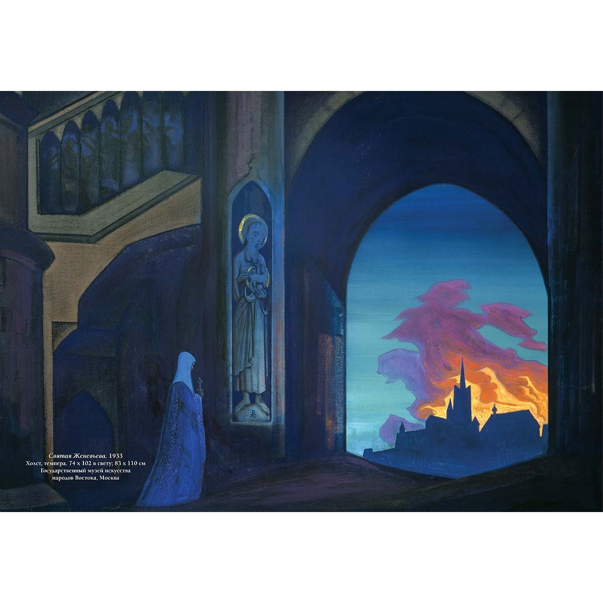 Переплет ручной работы. Натуральная переплетная кожа. Каптал из шелковых нитей. Ляссе шелковое. Обрез торшонированный золотой фольгой. Украшение переплета: тиснение полиграфической фольгой, полиграфическая вставка. Издание открывает нам творческий мир большого мастера – художника Николая Рериха. Вся его жизнь – это способ выразить свое восхищение миром. Он неустанно трудился, чтобы его картины, полные чудес, помогали людям обрести радость от пребывания на земле.