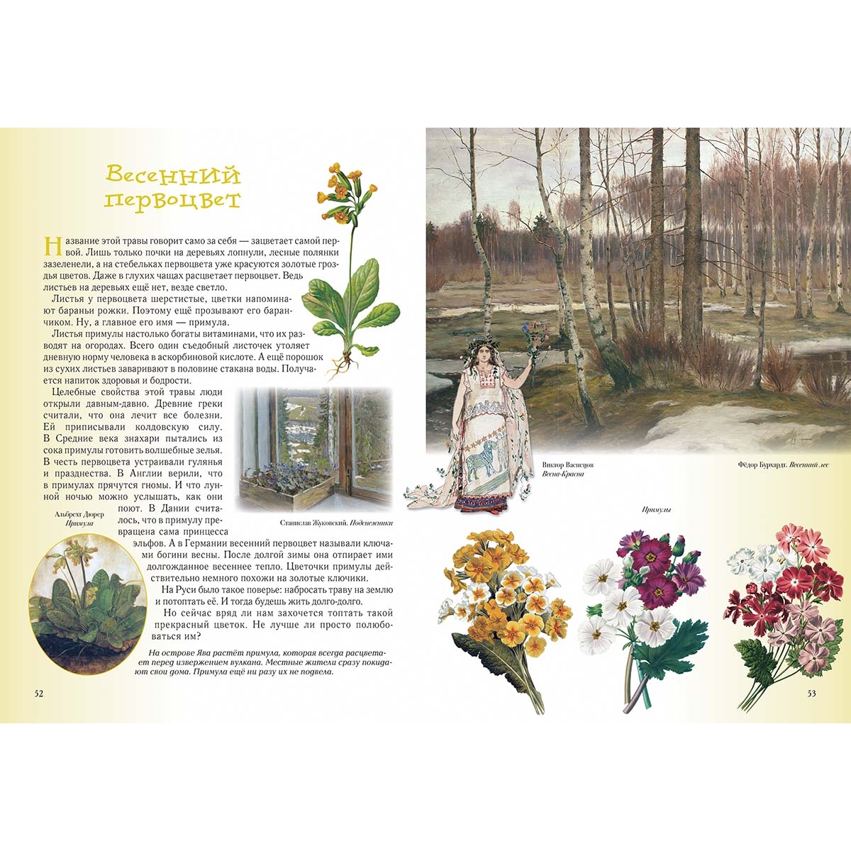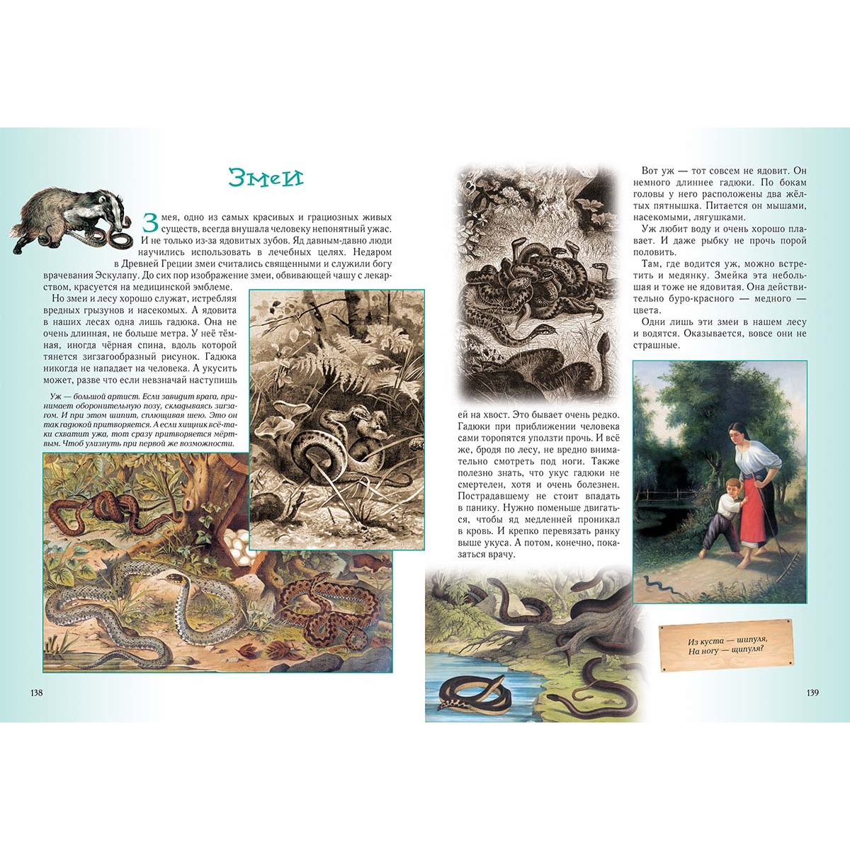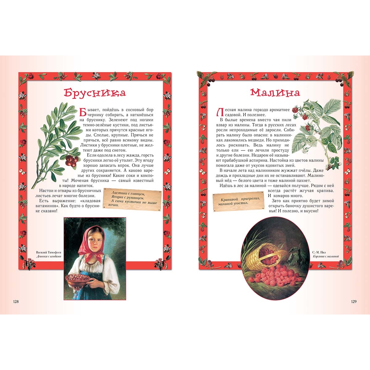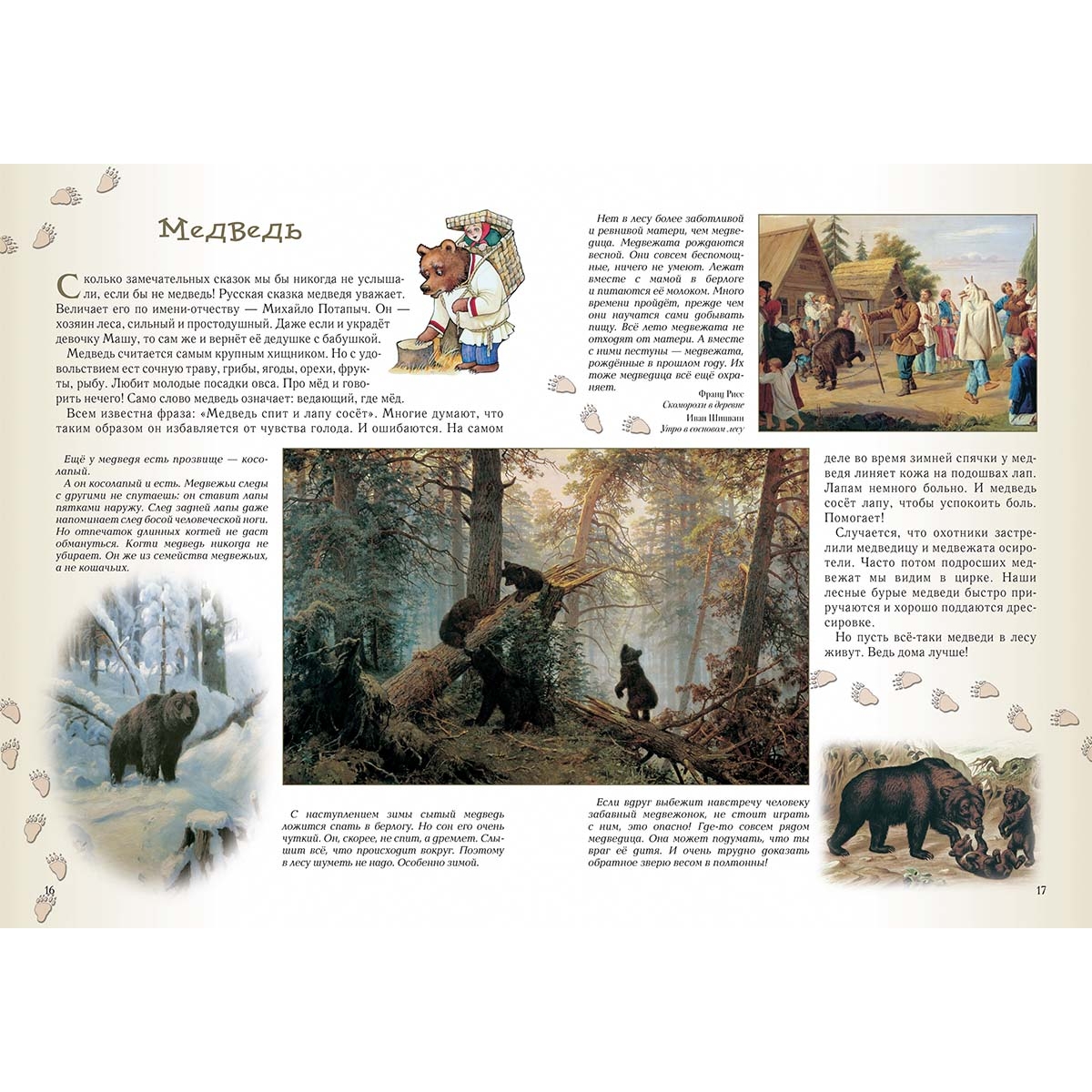 (из верстки) Прогулка первая Познавательная 4 Не губить, а беречь 6 Низкий поклон деревьям 8 Леший 9 Водяной 10 Баба-яга 12 Прогулка вторая Звериная 14 Медведь 16 Лось 18 Волк 20 Лиса 22 Барсук 24 Белка 24 Заяц 26 Кабан 28 Рысь 29 Бобёр 30 Ёж 32 Крот 33 Прогулка третья Древесная, тоже интересная 34 Дуб 36 Береза 38 Сосна 40 Ель 42 Осина 44 Липа 46 Клён 48 Прогулка четвёртая Травяная 50 Весенний первоцвет 52 Сон-трава 54 Медуница 55 Зверобой 55 Фиалка 56 Тысячелистник 57 Незабудка 58 Ландыш 60 Одуванчик 61 Колокольчики 62 Ромашка 64 Подорожник 66 Иван-да-марья 67 Иван-чай 68 Прогулка пятая Пернатая 70 Соловей 72 Дрозд 74 Тетерев 76 Глухарь 78 Синицы 80 Дятел 82 Сова 84 Кукушка 86 Снегирь 88 Клёст 89 Журавль 90 Ястреб 92 Коршун 94 Сокол 95 Скворец 96 Сойка 97 Цапля 98 Выпь 99 Ворон 100 Прогулка шестая Грибная 102 Белый 104 Подберёзовик 106 Подосиновик 107 Моховик 108 Рыжики 108 Маслята 109 Мухомор 110 Бледная поганка 111 Лисички 112 Грузди 112 Опята 114 «Ведьмины кольца» 115 Как не заблудиться 116 Прогулка седьмая Ягодная 118 Черёмуха 120 Рябина 122 Калина 124 Земляника 126 Черника 127 Брусника 128 Малина 129 Клюква 130 Сфагнум 131 Прогулка восьмая Ползающая, прыгающая, жужжащая 132 Муравьи 134 Пауки 136 Змеи 138 Лягушки 140 Жаба 141 Шмель 142 Несколько слов на прощание 143