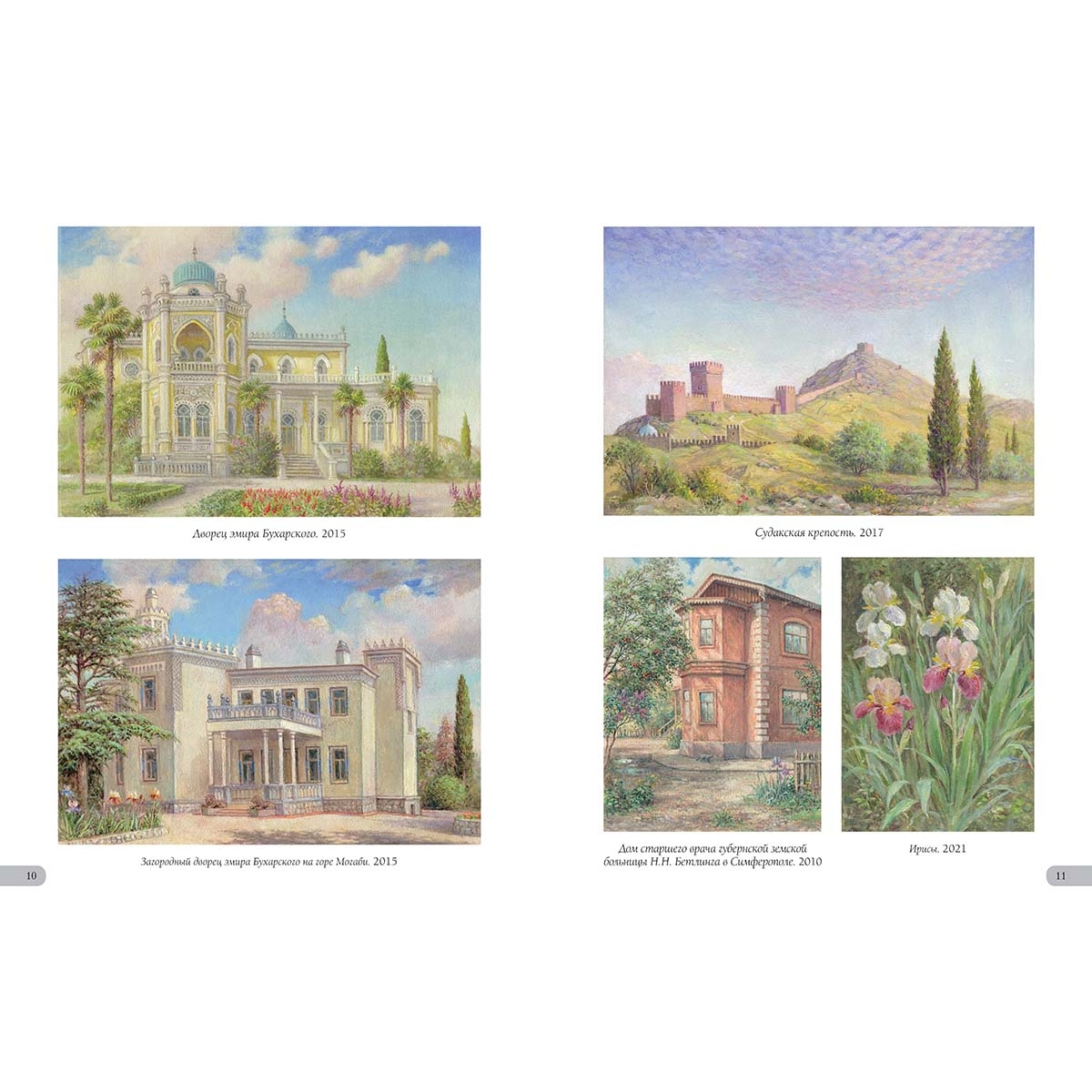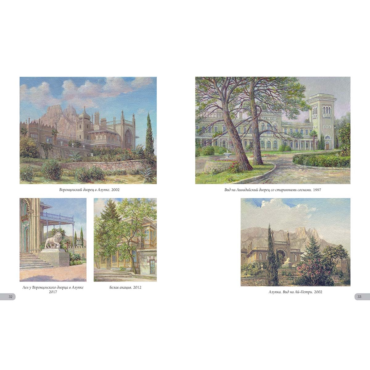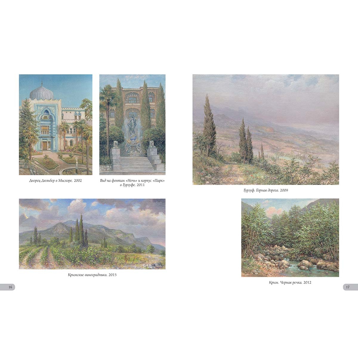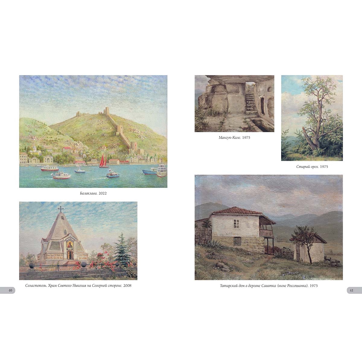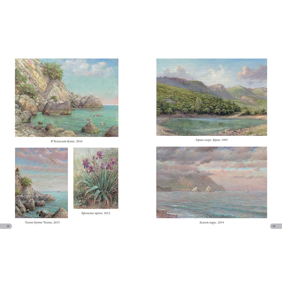 Алупка. Вид на Ай-Петри. 2002 33 Астры. 2010 39 Аю-Даг. 2005 4 Байдарская долина. Вид на Яман-Кола. 2014 37 Балаклава. 2022 40 Бахчисарай. 2018 42 Белая акация. 2012 32 Белеет парус. 2014 29 Белые крымские пионы. 2002 44 Белый олеандр. 2014 6 В Гурзуфском парке. 2013 36 В Чеховской бухте. 2016 28 Весна в Байдарской долине. 2012 43 Весна в Крыму. 1986 7 Ветка белой акации. 2018 13 Ветка граната. 2019 18 Вид на Ливадийский дворец со старинными соснами. 1997 33 Вид на скалы Адалары Гурзуфской бухты. 2019 5 Вид на фонтан «Ночь» и корпус «Парк» в Гурзуфе. 2011 16 Воронцовский дворец в Алупке. 2002 32 Воскресенский храм в Форосе. 2019 15 Вход на дачу «Саламбо» в Гурзуфе. 2021 30 Гагаринский корпус санатория «Гурзуфский». 1989 22 Гибискус. 2005 25 Гладиолусы. 2008 35 Глициния. 1992 39 Гора Авунда. Туман. 1992 22 Горное озеро в Краснокаменке. 2014 14 Горное озеро. Крым. 1995 29 Горный пейзаж. 2007 45 Губонинская библиотека. 2013 18 Губонинский ресторан. 2006 26 Гурзуф. Август. 1989 45 Гурзуф. Глициния у Гагаринского корпуса. 2007 3 Гурзуф. Глициния. Корпус «Ривьера». 2008 13 Гурзуф. Горная дорога. 2009 17 Гурзуф. Корпус «Ривьера». 2008 27 Гурзуф. Северная башня Гагаринского корпуса. 2012 21 Гурзуф. Фонтан «Рахиль». 1994 26 Гурзуфская бухта. Зимородок. 1996 5 Дача Ксения в Семеизе. 2015 39 Дача Стахеева «Отрада» в Алуште. 2019 19 Дача Чехова в Ялте. 2020 34 Дворец в Гаспре. 2014 20 Дворец Дюльбер в Мисхоре. 2002 16 Дворец Кичкине. 2014 12 Дворец Кузнецова в Форосе. 2017 15 Дворец Суук-Су в Артеке. 2005 6 Дворец эмира Бухарского. 2015 10 Дворик Ливадийского дворца. 2002 31 Девушка Арзы и разбойник Али-Баба. 2020 8 Дом Раевского в Гурзуфе. 1995 38 Дом Ришелье в Гурзуфе. 1994 38 Дом старшего врача губернской земской больницы Н.Н. Бетлинга в Симферополе. 2010 11 Древний Херсонес. 1994 24 Желтые розы. 2003 38 Загородный дворец эмира Бухарского на горе Могаби. 2015 10 Ирисы. 2021 11 Кавалерская звезда (Пассифлора). 2019 19 Каменистый берег. 2004 4 Камни, освещенные солнцем. 1997 23 Кипарисы. 2015 25 Колоннадка в Гурзуфском парке. 2010 13 Крым. Горные цветы. 2013 42 Крым. Гурзуф. Гостиница «Парк». 2002 26 Крым. Гурзуф. Дача Чехова. 2007 34 Крым. Гурзуф. Шаляпинский корпус. 2010 7 Крым. Дворец Карасан в Партените. 2012 14 Крым. Дворец Харакс. 2002 27 Крым. Замок княгини Гагариной. 2011 30 Крым. Ласточкино гнездо. 2011 2 Крым. Черная речка. 2012 17 Крымские виноградники. 2015 16 Крымские ирисы. 2012 28 Крымские лилии. 2002 6 Крымский вид. 2012 15 Крымский закат. 2020 12 Крымский пейзаж. 2015 35 Лев у Воронцовского дворца в Алупке. 2017 32 Лестница Юсуповского дворца. 2002 8 Ливадийский дворец. 2018 31 Лилии. 2007 31 Лунная дорожка. Гурзуф. 2004 25 Мангуп-Кале. 1975 41 Массандровский дворец. Северный фасад. 2017 9 Массандровский замок. 2002 44 Мраморные львы в Гурзуфском парке. 1993 36 Мыс Айя. 2002 46 Нижняя беседка в Никитском ботаническом саду. 2014 12 Олеандр. 2015 13 Освещение. 2018 46 Осень в Крыму. 2018 37 Памятник Нахимову в Севастополе. 1994 24 Панорама Гурзуфской бухты. 2010 4 Перед бурей. Гора Таш-Аран (Сундук-Камень). 1977 43 Причал в Гурзуфе. 2017 7 Пушкинский кипарис. 1996 35 Розовые лилии в парке Юсуповского дворца. 2002 44 Розовый куст в Гурзуфе. 2021 42 Розовый куст на фоне библиотеки Губонина. 2012 18 Розовый куст. 1996 21 Розовый куст. 2018 20 Севастополь. Храм Святого Николая на Северной стороне. 2008 40 Старый орех. 1975 41 Судакская крепость. 2017 11 Татарский дом в деревне Саватка (ныне Россошанка). 1975 41 Увядающие хризантемы. 2007 37 Уголок бухты Чехова. 2015 28 Уголок Гурзуфской бухты. 2021 30 Флоксы. 2000 36 Фонтан «Ночь». Сумерки. 2010 22 Чайка. 2002 4 Чайка. 2018 23 Южная башня Массандровского замка. 2012 9 Юсуповский дворец в Кореизе.