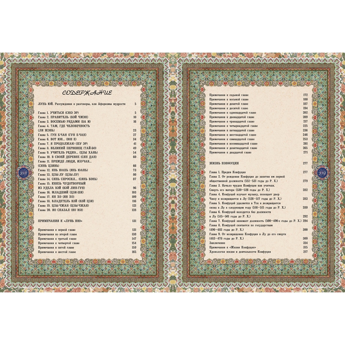 Французский цельнокожаный переплет ручной работы на шнурах. Натуральная переплетная кожа. Цвет Красное дерево. Форзац составной на кожаной слизуре. Дизайнерская бумага. Каптал двойной наборный, ручное плетение из шелковых нитей. Обрез торшонированный комбинированной фольгой. Ляссе шелковое. Украшение переплета: тиснение полиграфической фольгой, блинтовое тиснение. Ювелирные накладки: Художественное литье-латунь, серебрение, золочение. Полировка. Ювелирные вставки: натуральные камни, огранка кабошон, жемчуг. Сотни цветных иллюстраций - старинные гравюры и другие произведения китайского изобразительного искусства - наиболее ярко отражают древнюю культуру Поднебесной империи. Издание включает жизнеописание Конфуция, философский трактат "Лунь-юй", содержащий афоризмы и высказывания знаменитого философа, разнообразные комментарии и варианты перевода.
