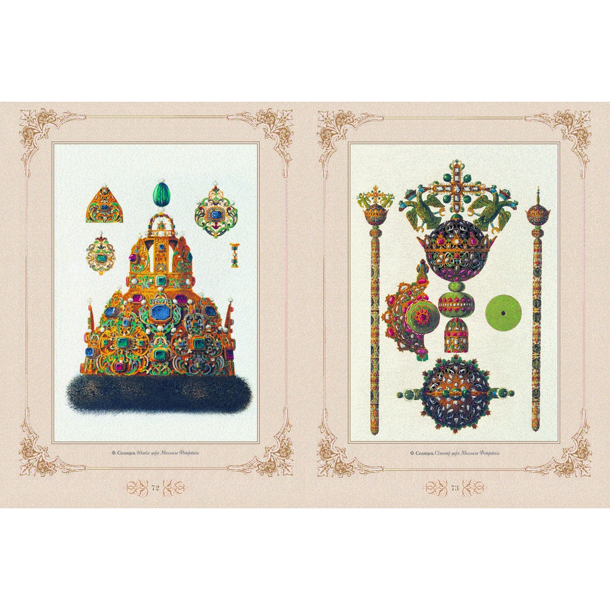 Французский цельнокожаный переплет ручной работы на шнурах. Натуральная переплетная кожа. Форзац составной на кожаной слизуре. Дизайнерская бумага. Каптал двойной наборный, ручное плетение из шелковых нитей. Обрез торшонированный золотой фольгой. Ляссе шелковое. Тиснение полиграфической фольгой. Ювелирная накладка - художественное литье, эмаль. Ценность книги в том, что автор современник Александра III и Николая II, писатель, историк, биограф, виднейший публицист своего времени И.Н. Божерянов. Текст печатается в соответствии с современными орфографическими нормами. Издание раскрывает историю России через призму царствования дома Романовых на фоне тщательно подобранных иллюстраций (живопись, старинные гравюры, предметы интерьера, памятники архитектуры, реликвии, археологические находки и много других интересных материалов). Отделка бархатом, накладка корона Российской империи. Драгоценное оформление драгоценного содержания.