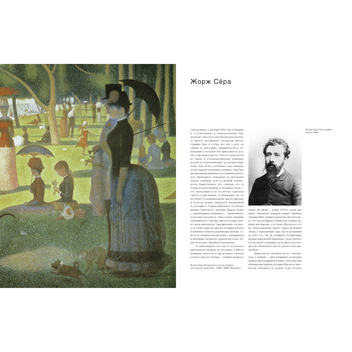 В книге не только представлены максимально полные и подробные биографии данных художников с искусствоведческим анализом и разбором картин, но и дан великолепный визуальный ряд: сотни картин, практически неизвестные широкому зрителю рисунки и ранние вещи Ван Гога, скульптуры и картины Гогена, редкие фотографии, произведения художников круга Сёра и его самого.